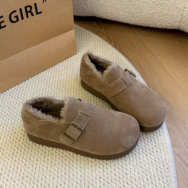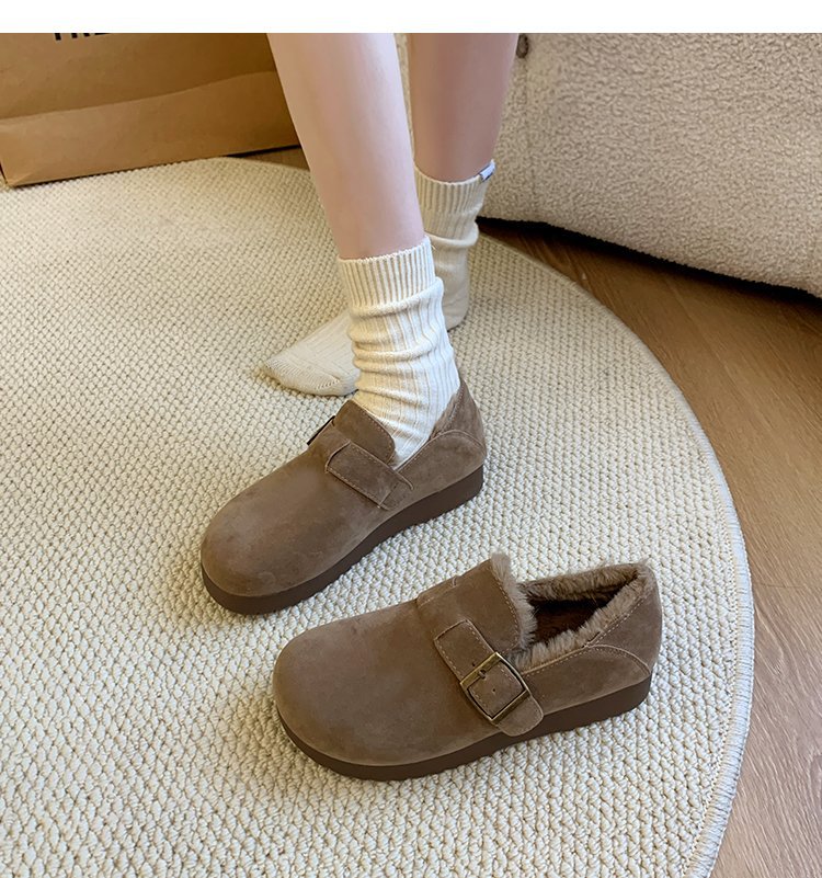 두꺼운 바닥 모든 것을 포함하는 Birkenan 신발 여성의 2024 새로운 가을/겨울 한 단계 게으른 콩 신발 기모 따뜻한 마오 마오 면화