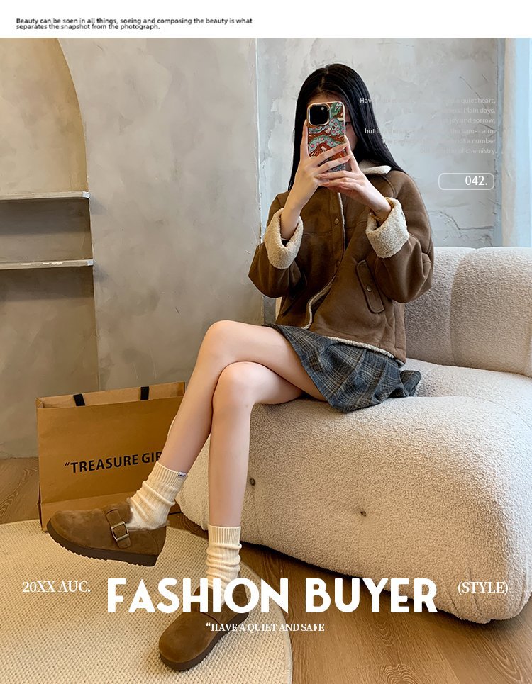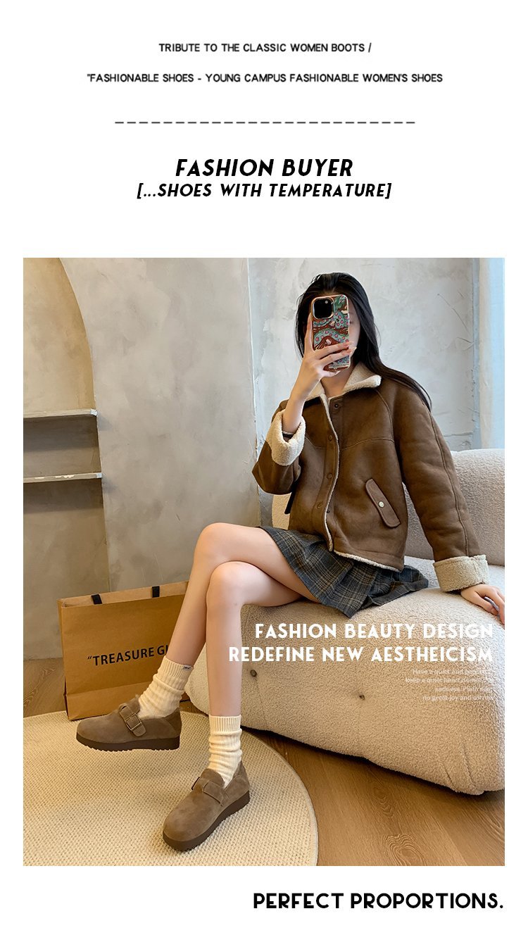 두꺼운 바닥 모든 것을 포함하는 Birkenan 신발 여성의 2024 새로운 가을/겨울 한 단계 게으른 콩 신발 기모 따뜻한 마오 마오 면화스토어 가기