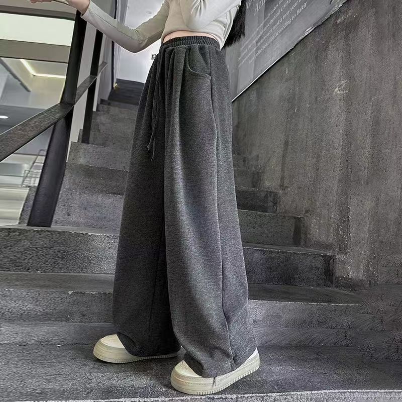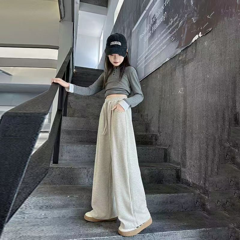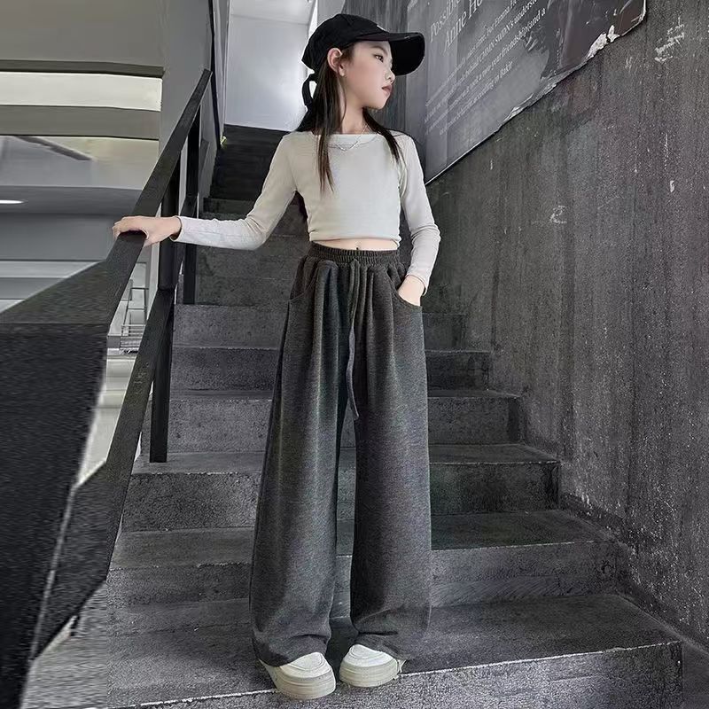 소녀 바지 가을 겨울 2024 새로운 한국 어린이 넓은 다리 스트레이트 바지 큰 어린이 기모 투약 찹쌀 바지스토어 가기