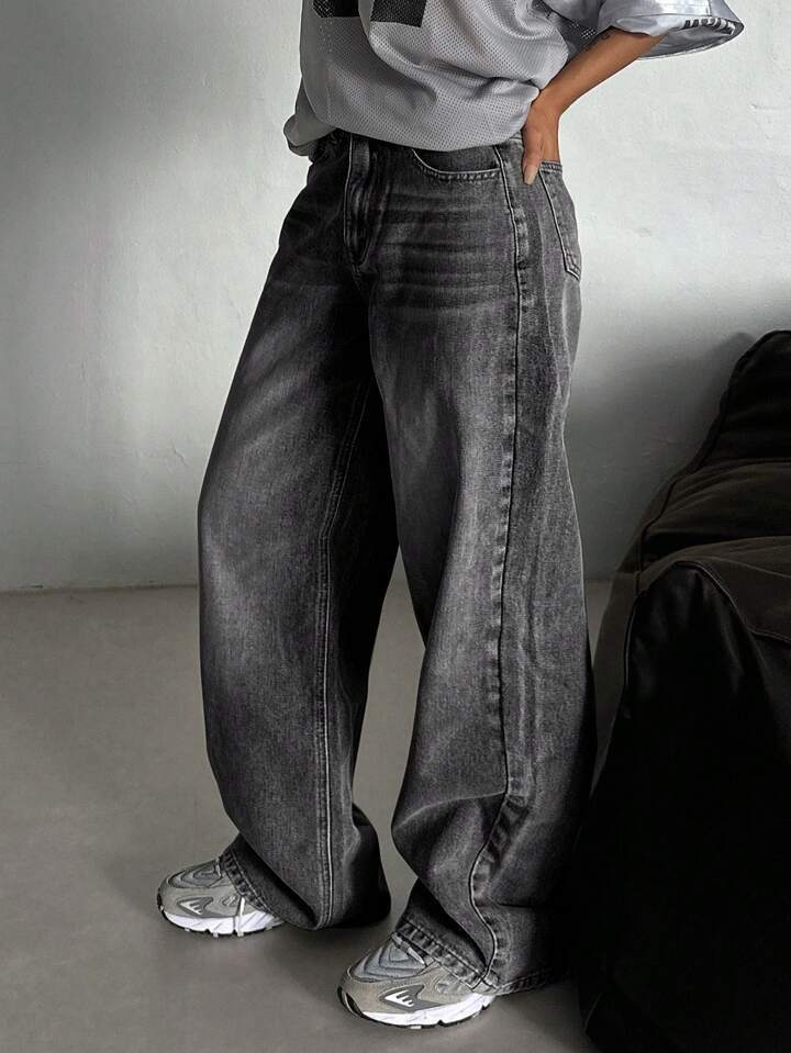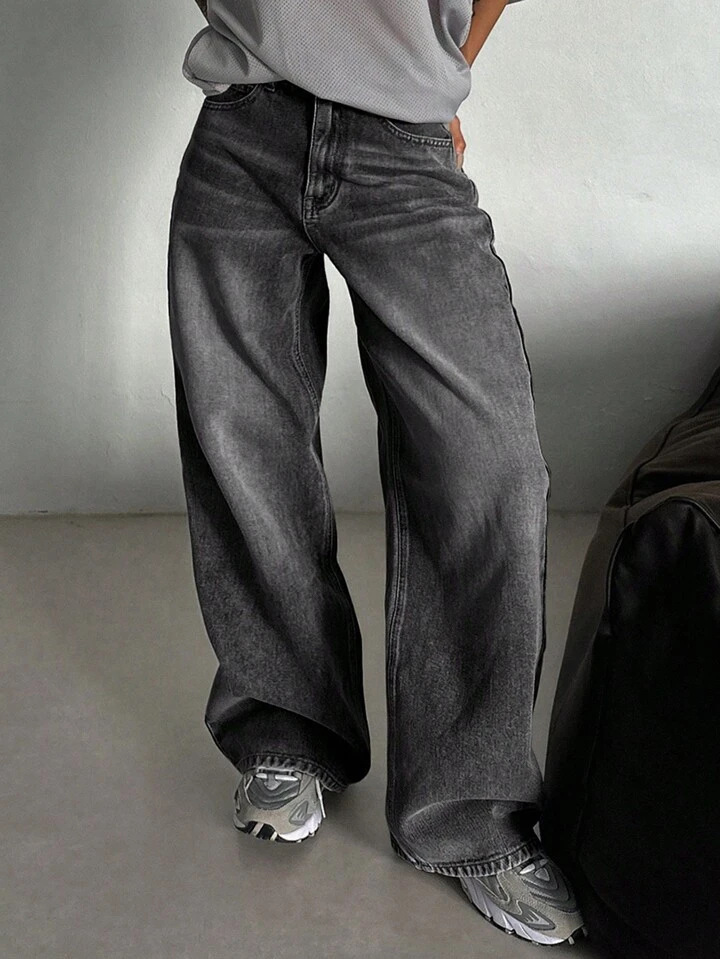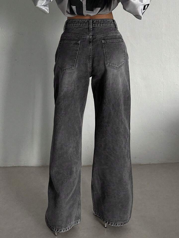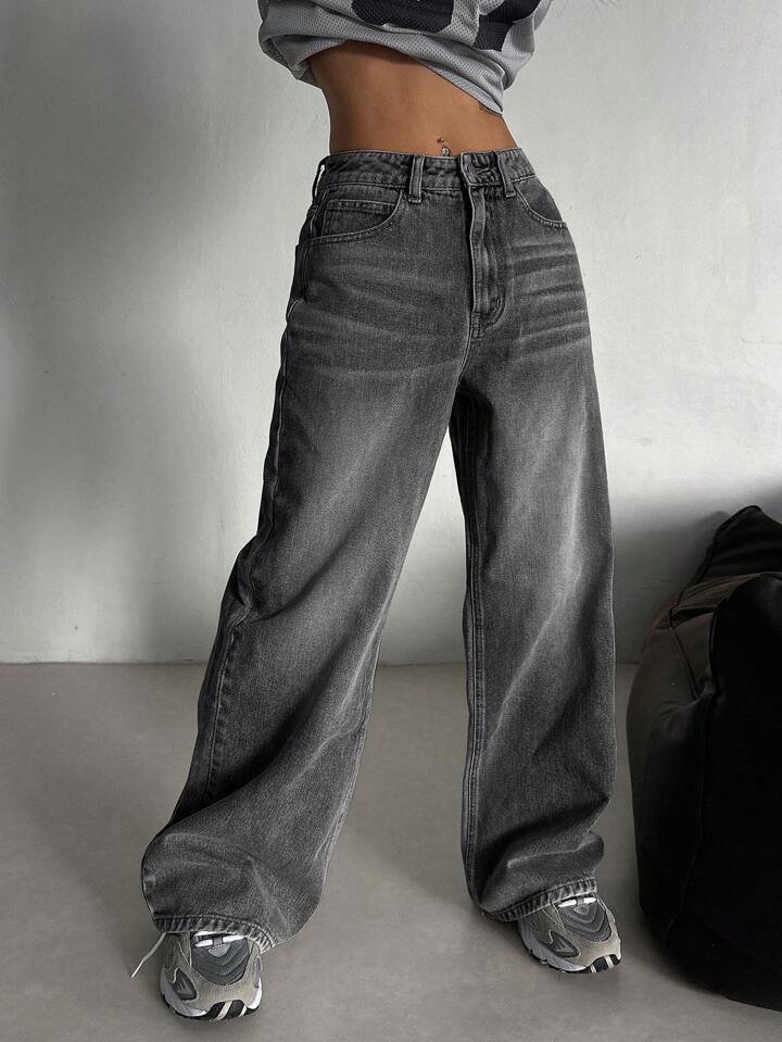 미국식 스트리트 레트로 스모크 그레이 워싱 와이드 레그 청바지 여성용 가을 겨울 다용도 하이웨이스트 루즈핏 와이드 레그 바닥 길이 바지스토어 가기