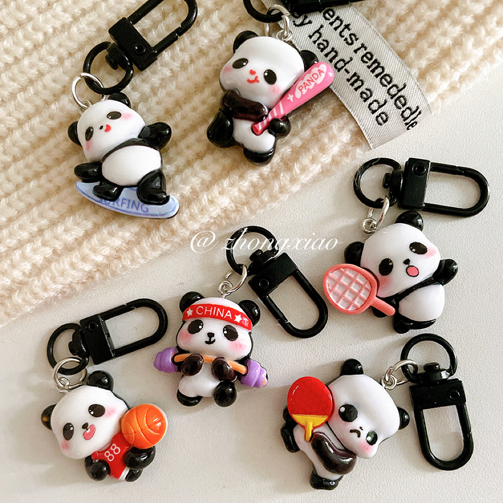 귀여운 스포츠 팬더 키 체인 펜던트 만화 재미 소녀 배낭 교수형 액세서리 학생 여자 친구 선물