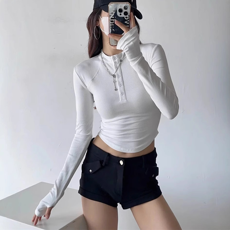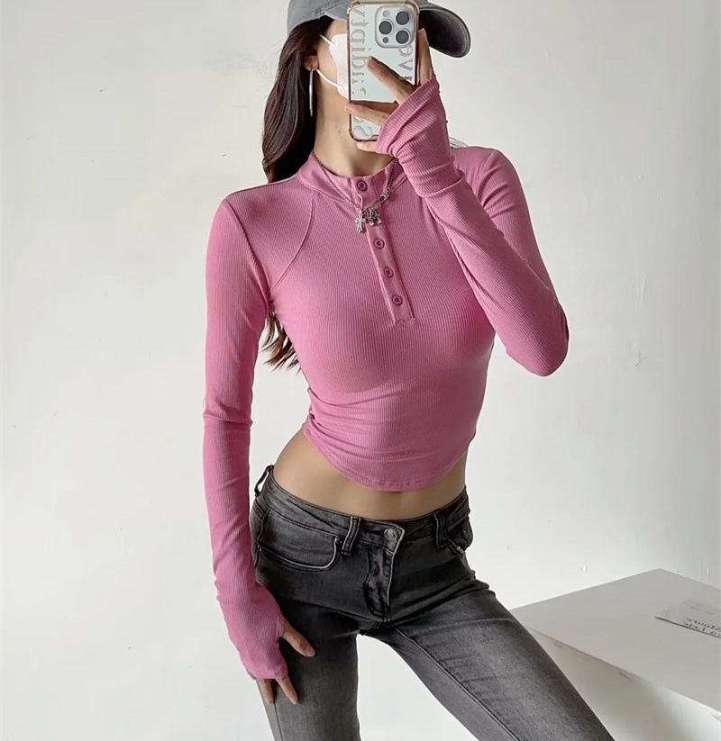 순수한 욕망 핫 소녀 벨벳 질감 개미 허리 바닥 셔츠 가을, 겨울 새로운 솔리드 컬러 버튼 곡선 티셔츠스토어 가기