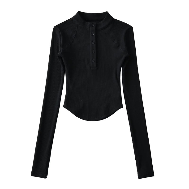 순수한 욕망 핫 소녀 벨벳 질감 개미 허리 바닥 셔츠 가을, 겨울 새로운 솔리드 컬러 버튼 곡선 티셔츠