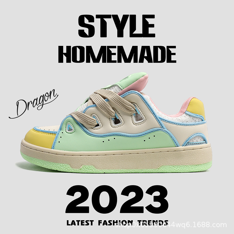전국 조수 커플 빵 신발 여성 오리지널 마카롱 도파민 새 가죽 베이크 남성 및 여성 스케이트 신발 운동화