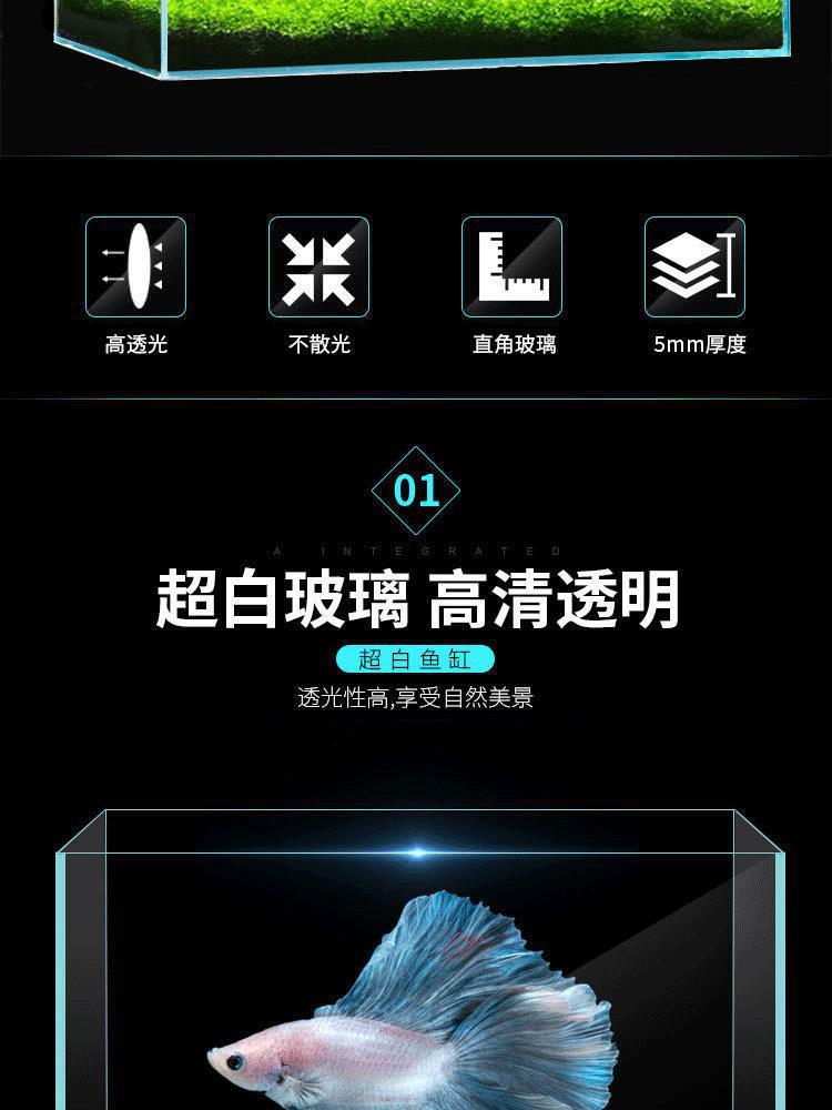 진징 슈퍼 화이트 어항 직사각형 거실 사무실 데스크탑 작은 양동이 물고기 아쿠아 잔디 생태 조경 거북이 탱크