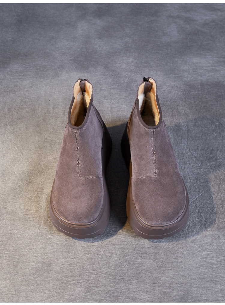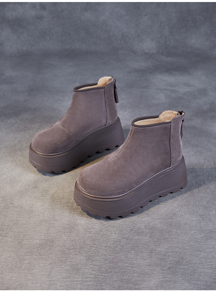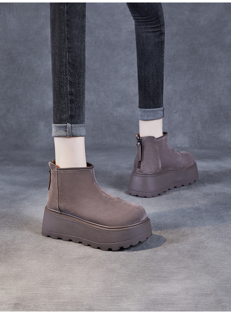 프로스트 정품 가죽 두꺼운 바닥 마틴 부츠 여성 2024 년 겨울 새 작은 높이 기모 두꺼운 짧은 부츠 증가스토어 가기