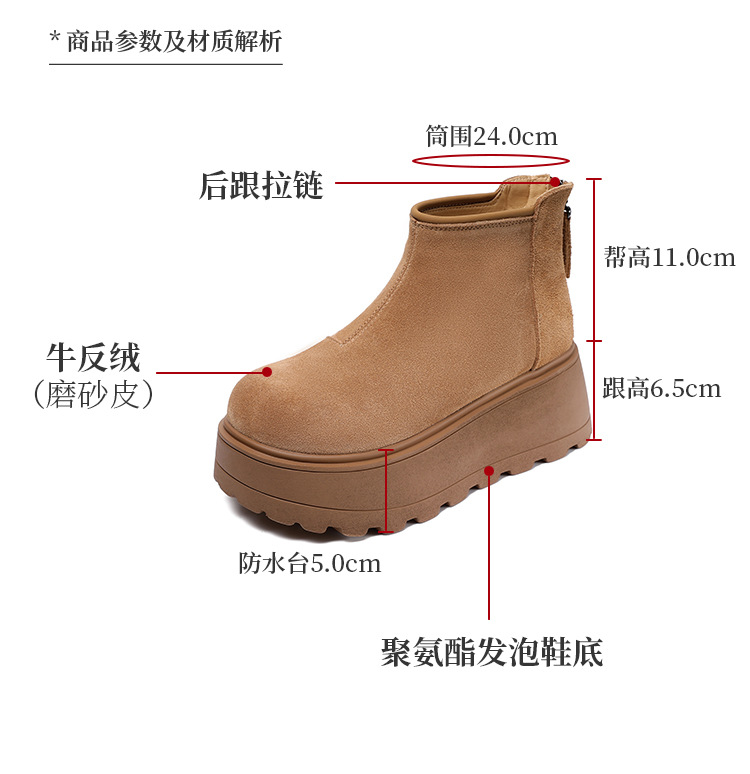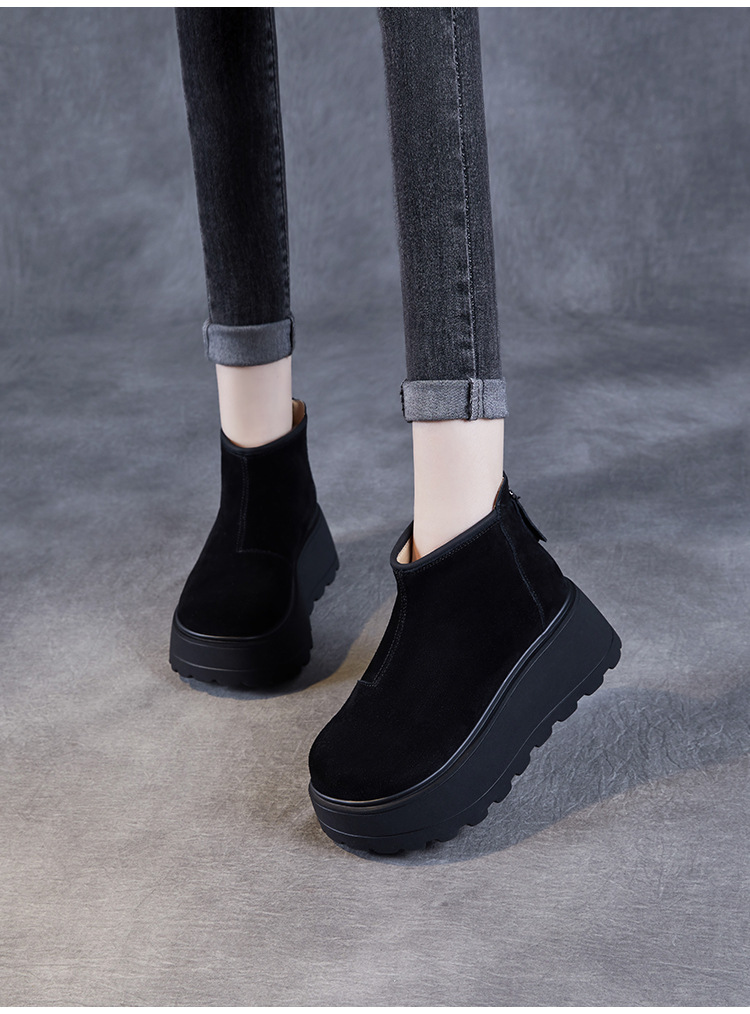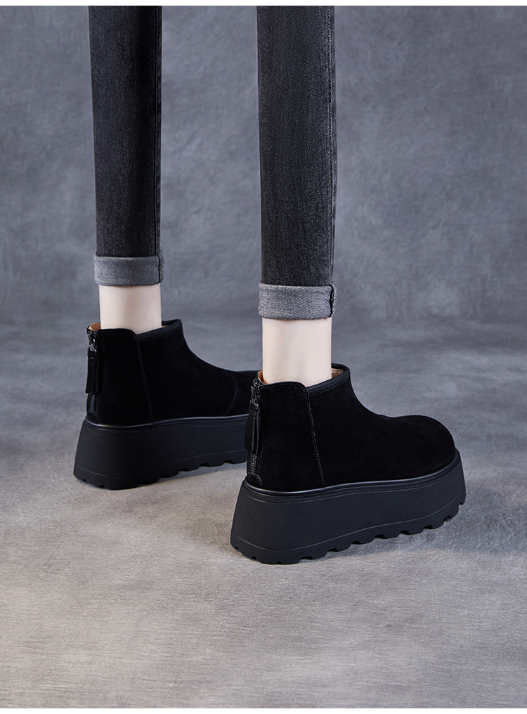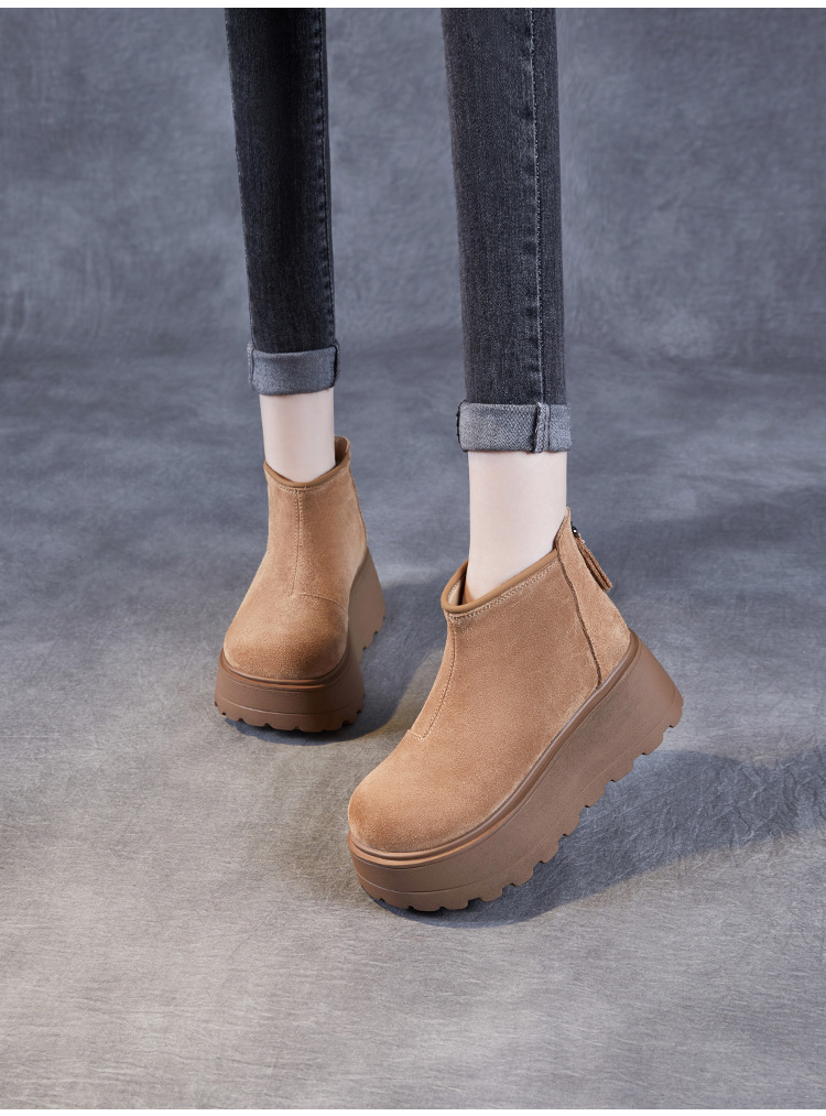 프로스트 정품 가죽 두꺼운 바닥 마틴 부츠 여성 2024 년 겨울 새 작은 높이 기모 두꺼운 짧은 부츠 증가