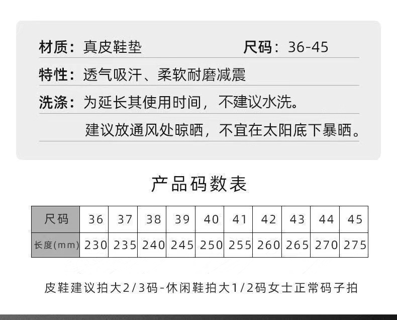 가죽 안창 두꺼운 가죽 남성과 여성의 수분을 좋아하는 통기성 Cowhide insoles 사계절 스포츠 insoles스토어 가기