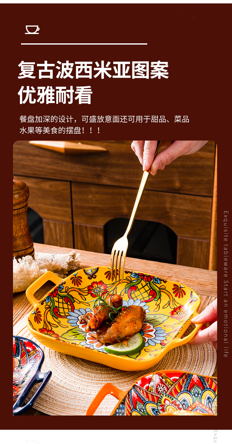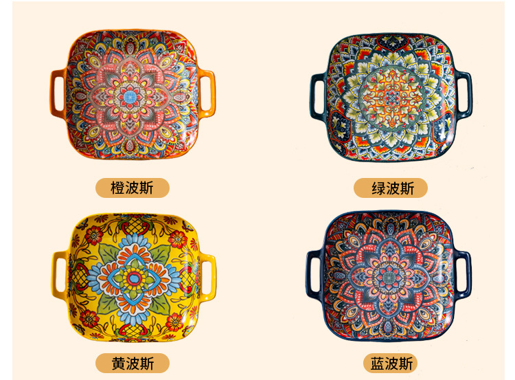 보헤미안 비나 럴 스퀘어 세라믹 플레이트 창조적 인 가정용 접시 그물 유명 과일 Psta 플레이트 볶음 플레이트 국경스토어 가기