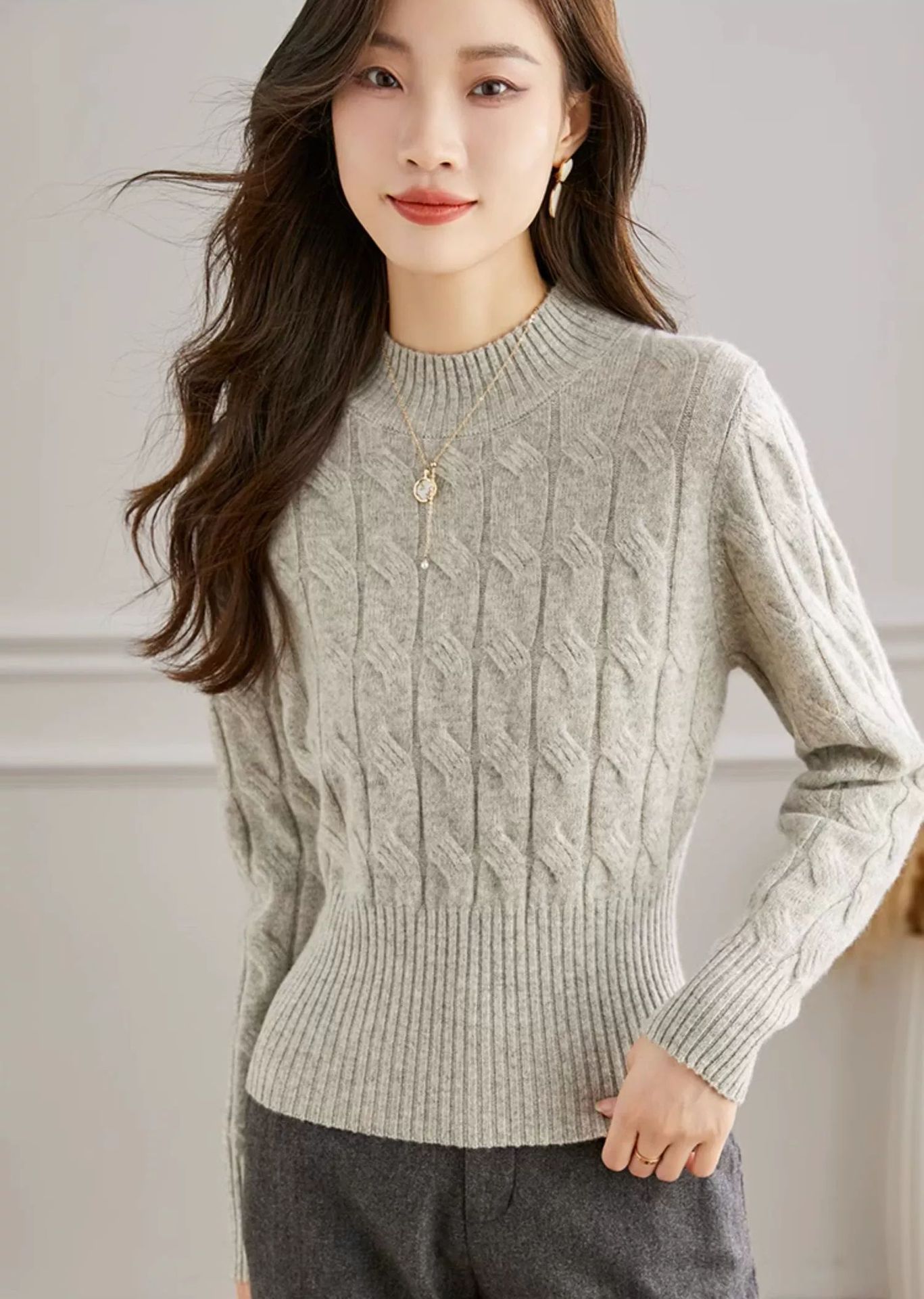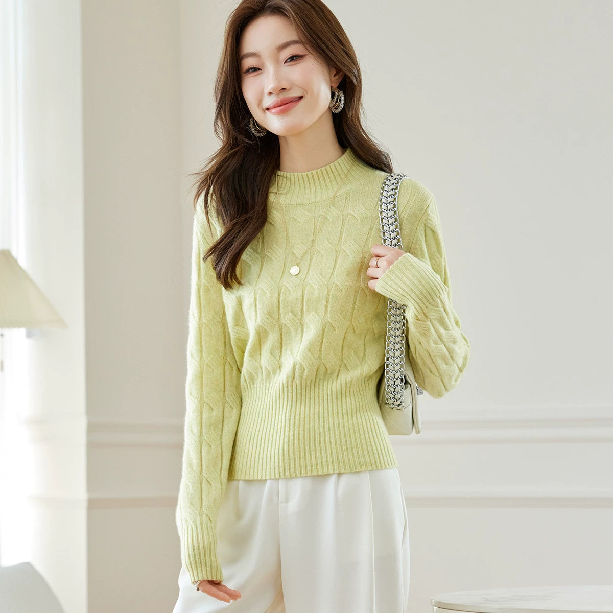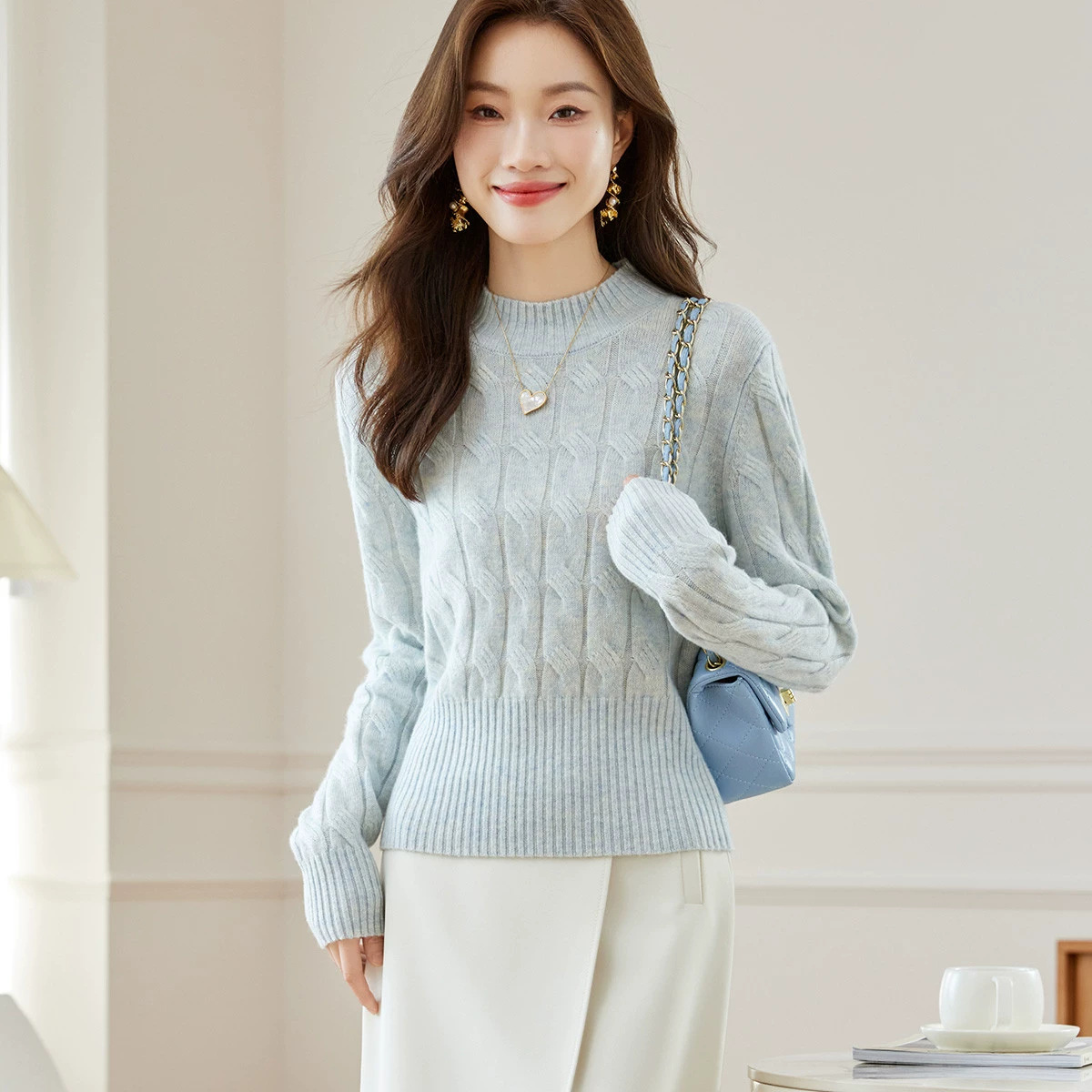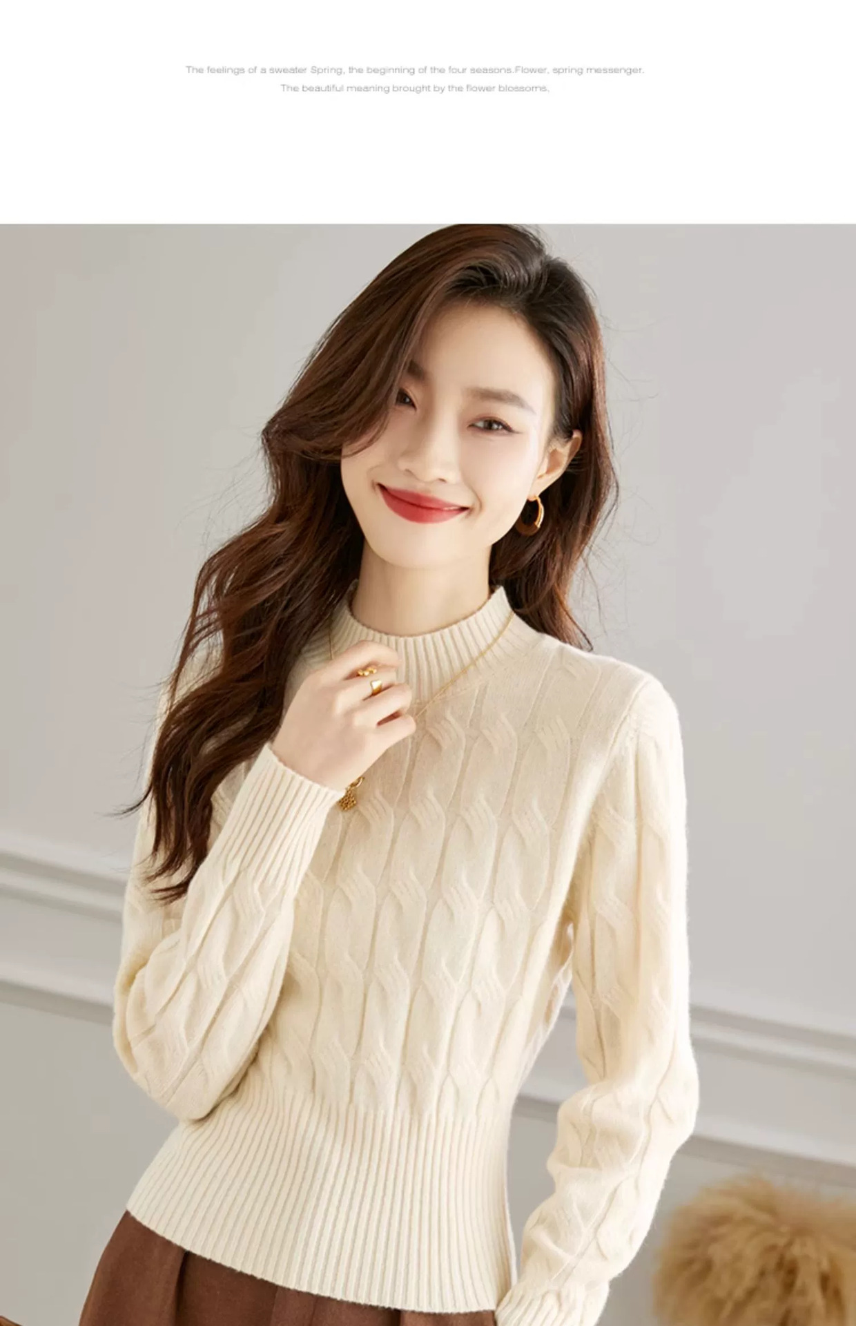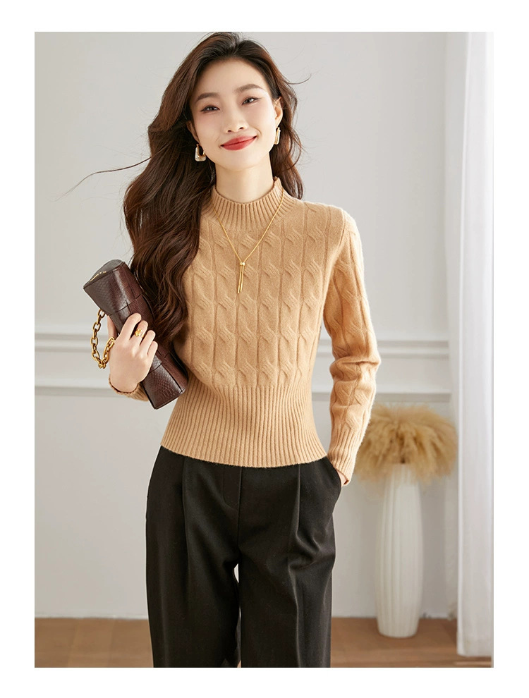 게으른 스타일 짧은 높은 허리 니트 스웨터 여성의 2024 가을 및 겨울 새로운 느슨한 패션 올 매치 하프 터틀넥 베이스 스웨터