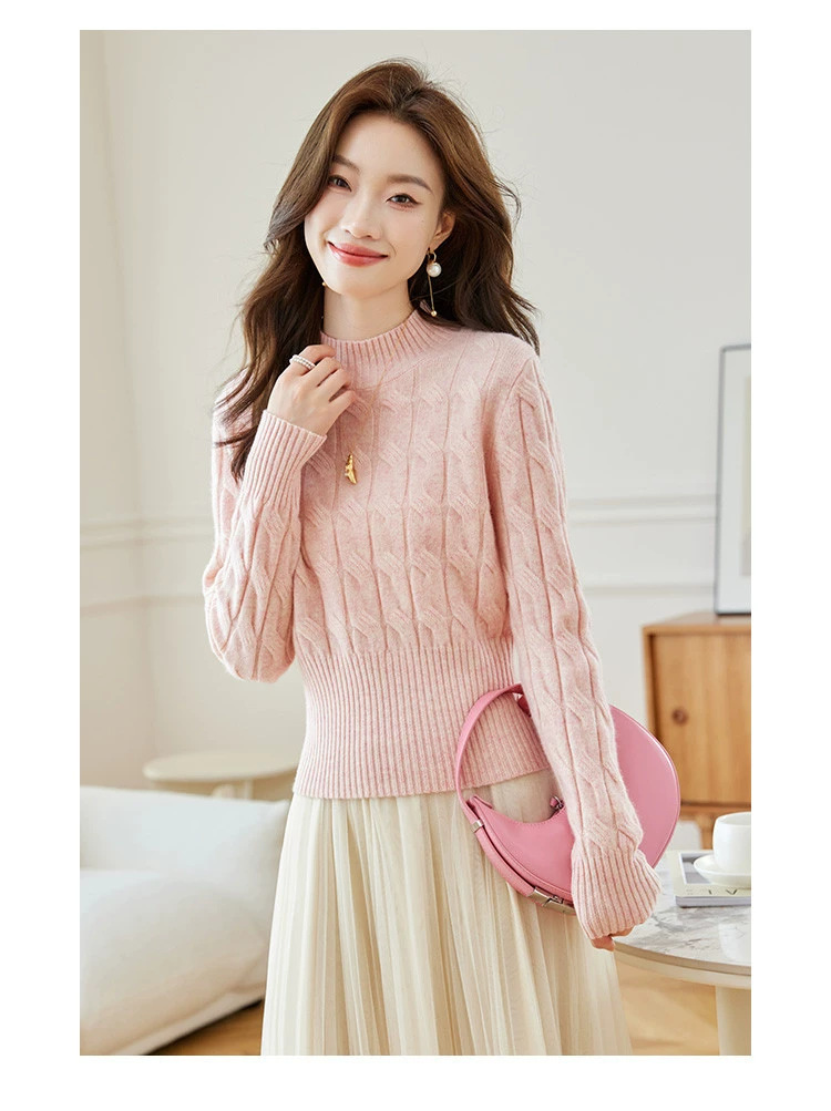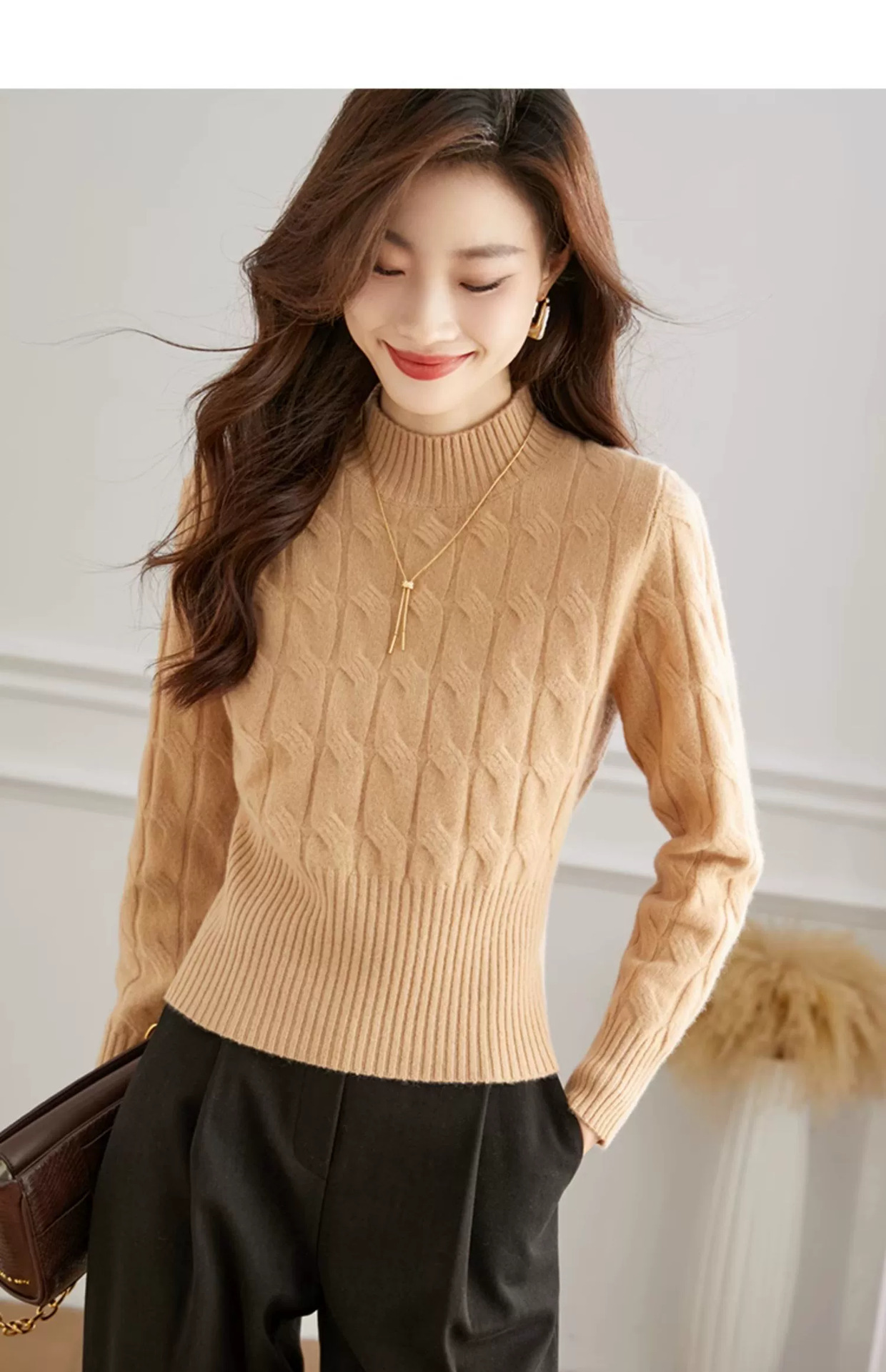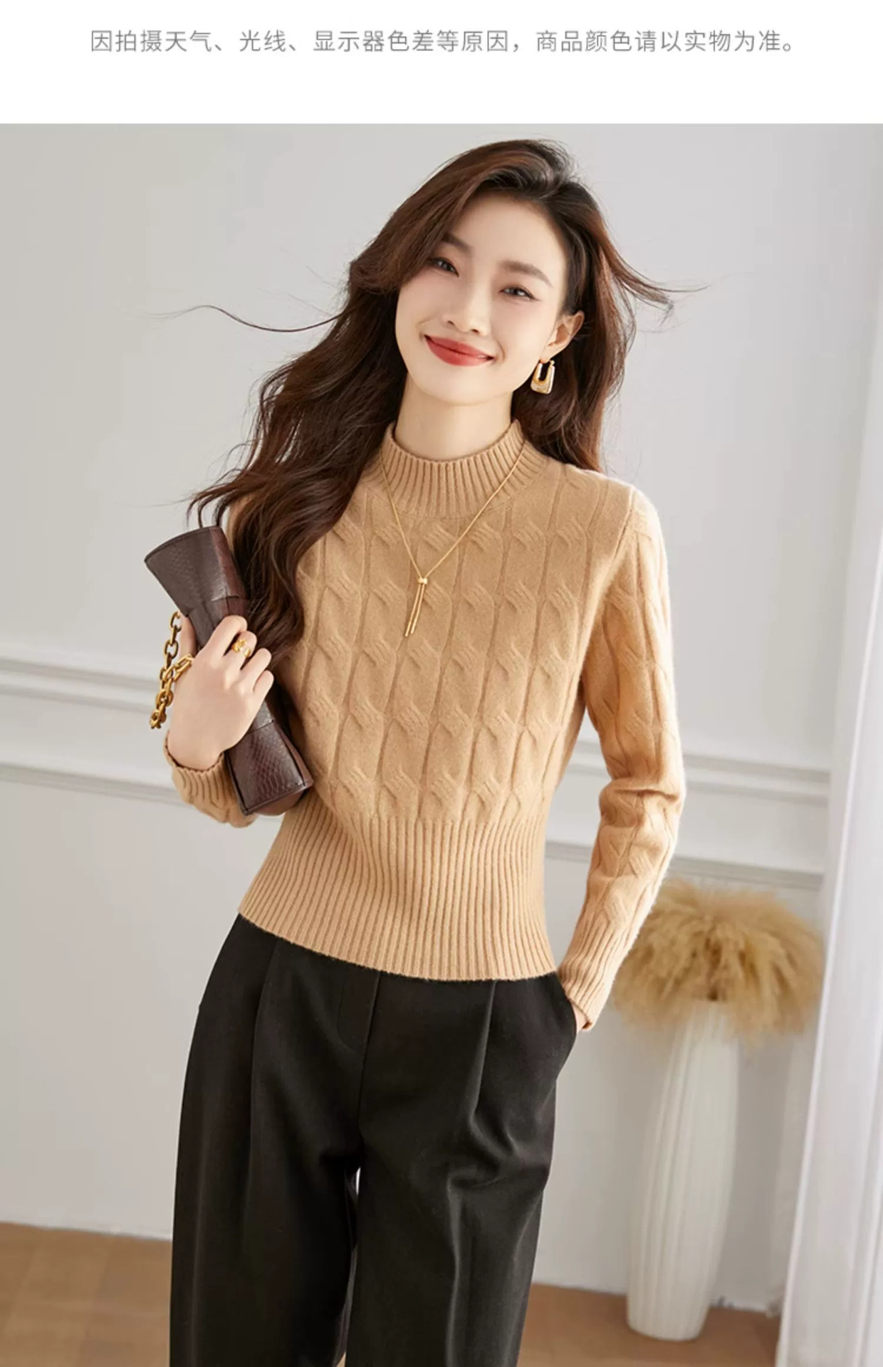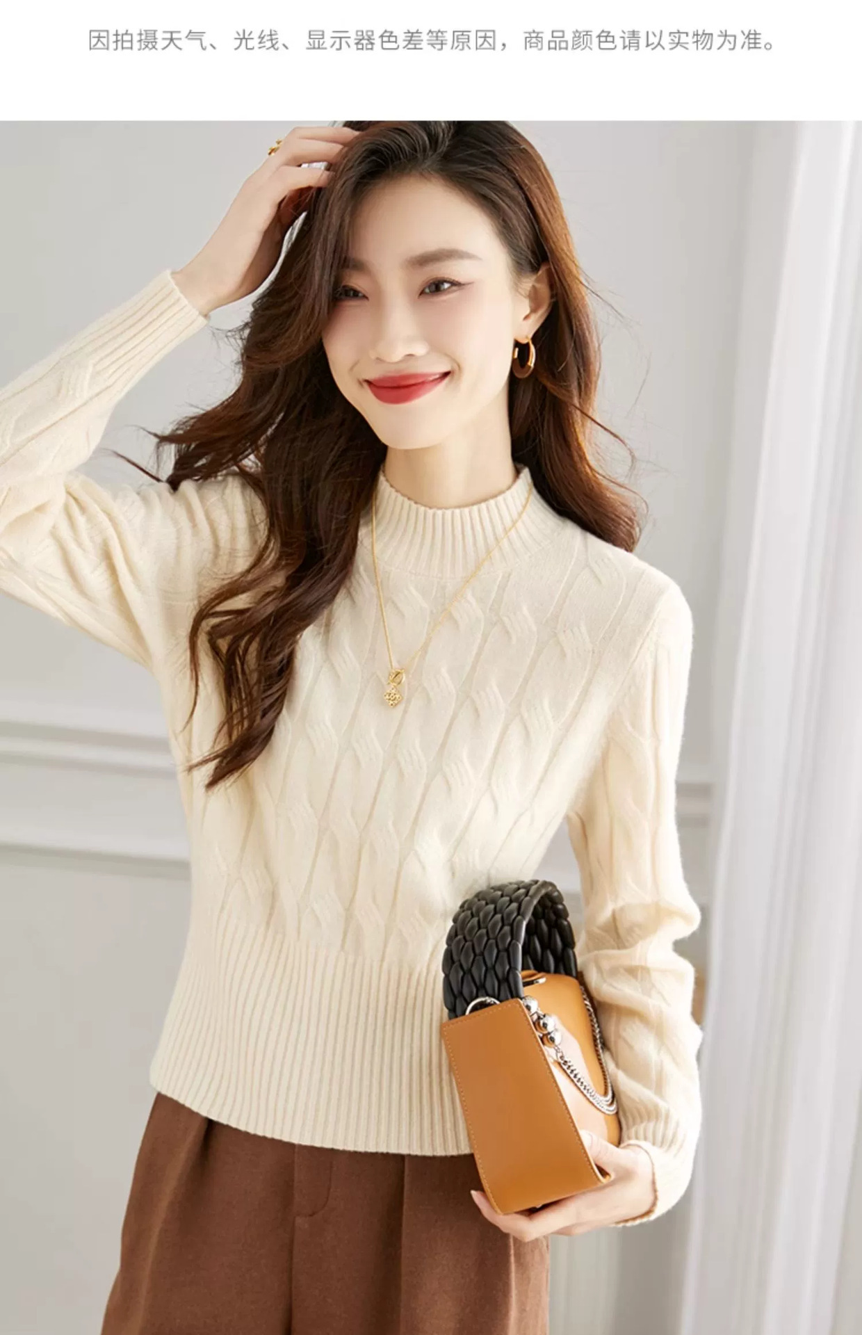게으른 스타일 짧은 높은 허리 니트 스웨터 여성의 2024 가을 및 겨울 새로운 느슨한 패션 올 매치 하프 터틀넥 베이스 스웨터스토어 가기