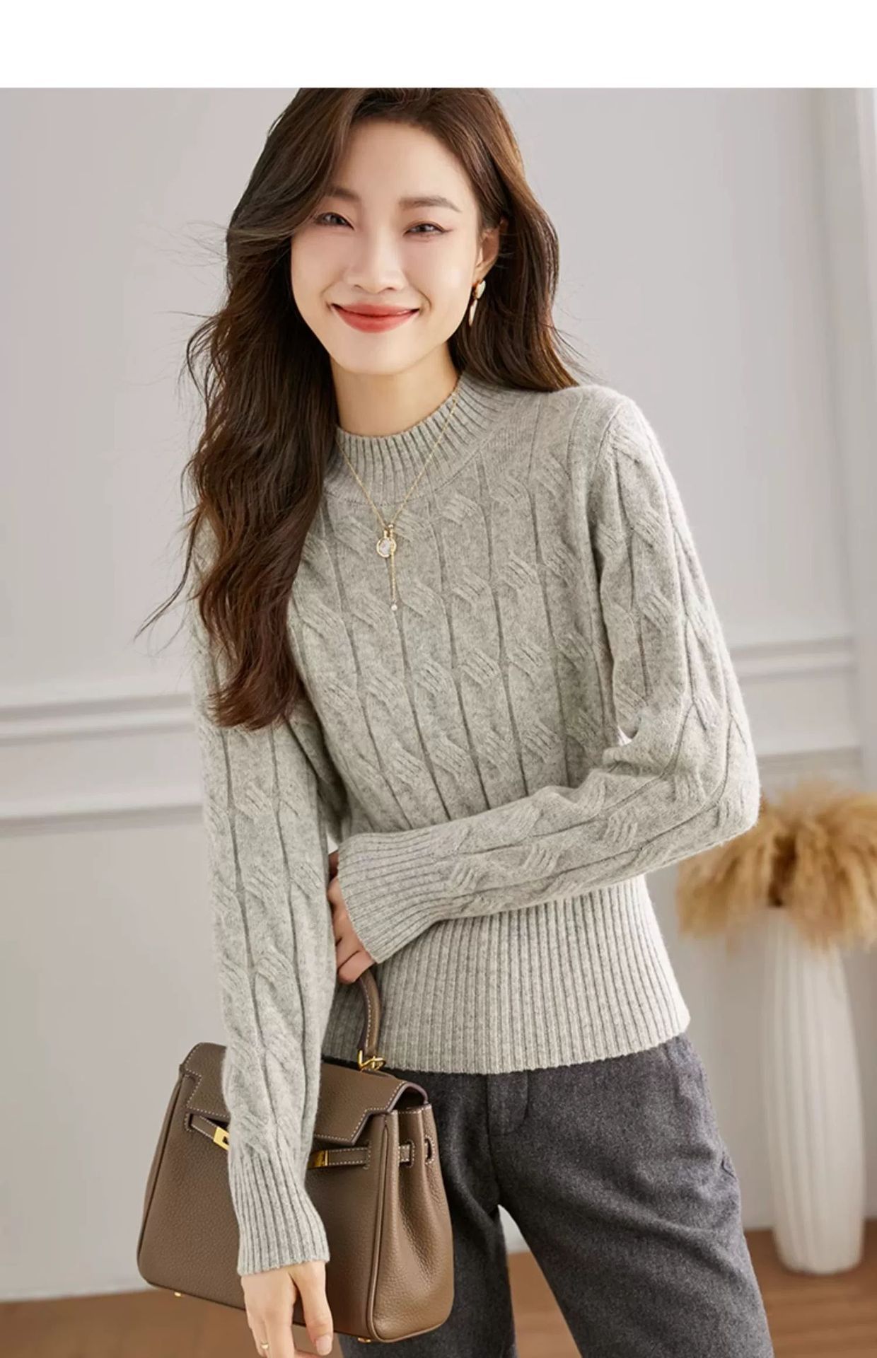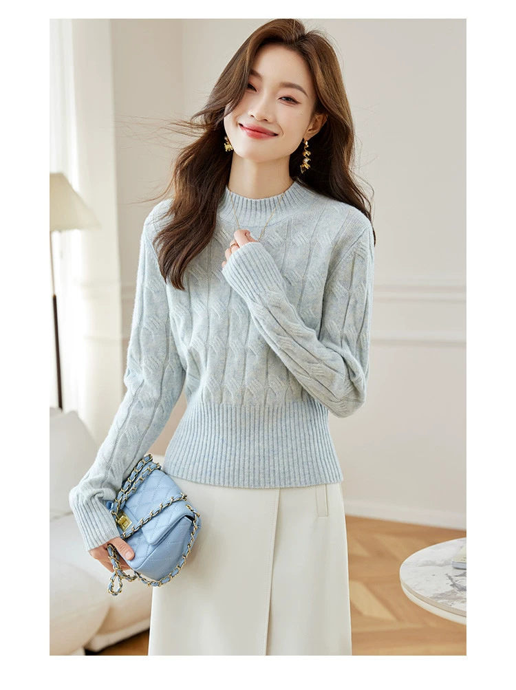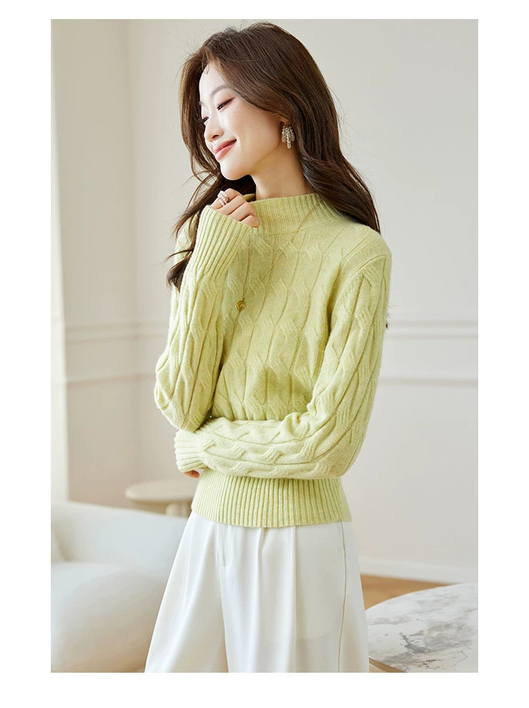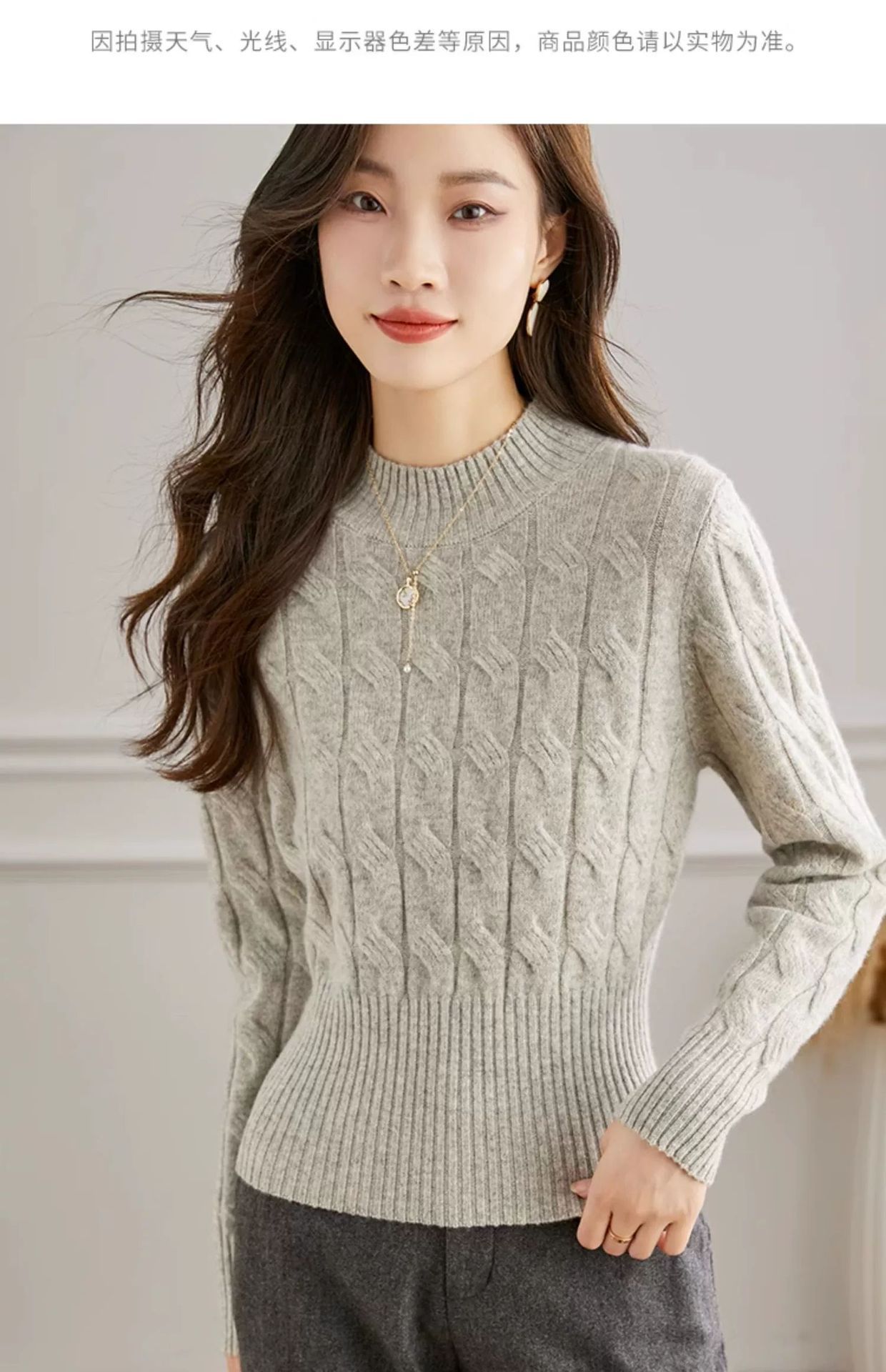 게으른 스타일 짧은 높은 허리 니트 스웨터 여성의 2024 가을 및 겨울 새로운 느슨한 패션 올 매치 하프 터틀넥 베이스 스웨터스토어 가기