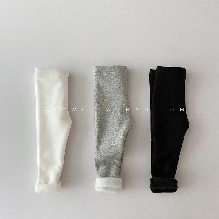 한국 소년 소녀를위한 아동복 구매 2024 새로운 가을과 겨울 단색 외국 스타일 면화와 벨벳 레깅스스토어 가기