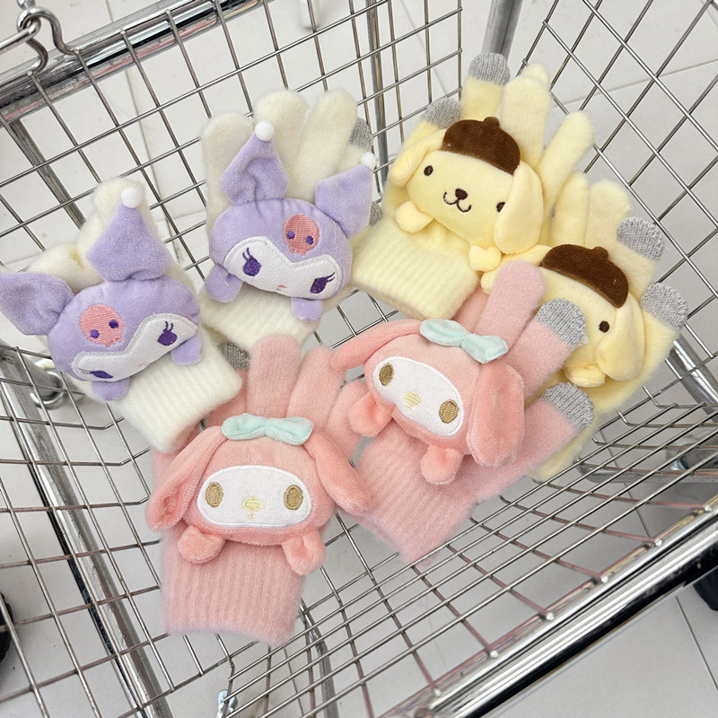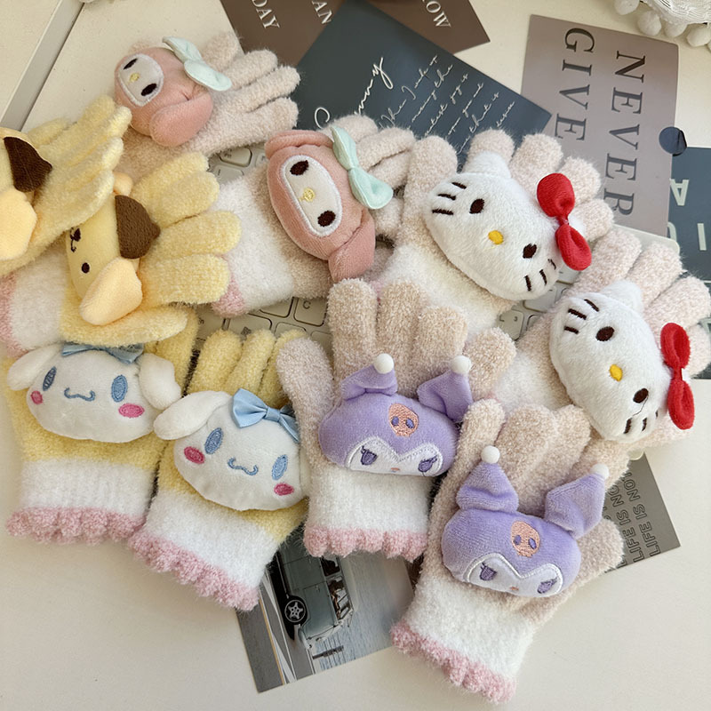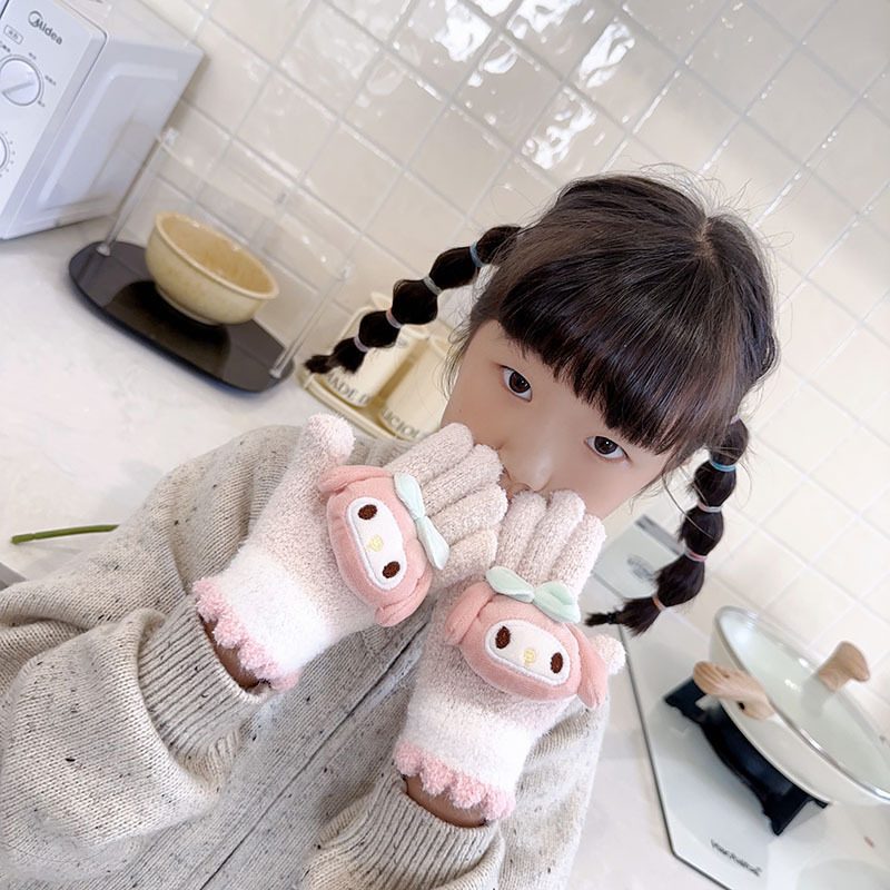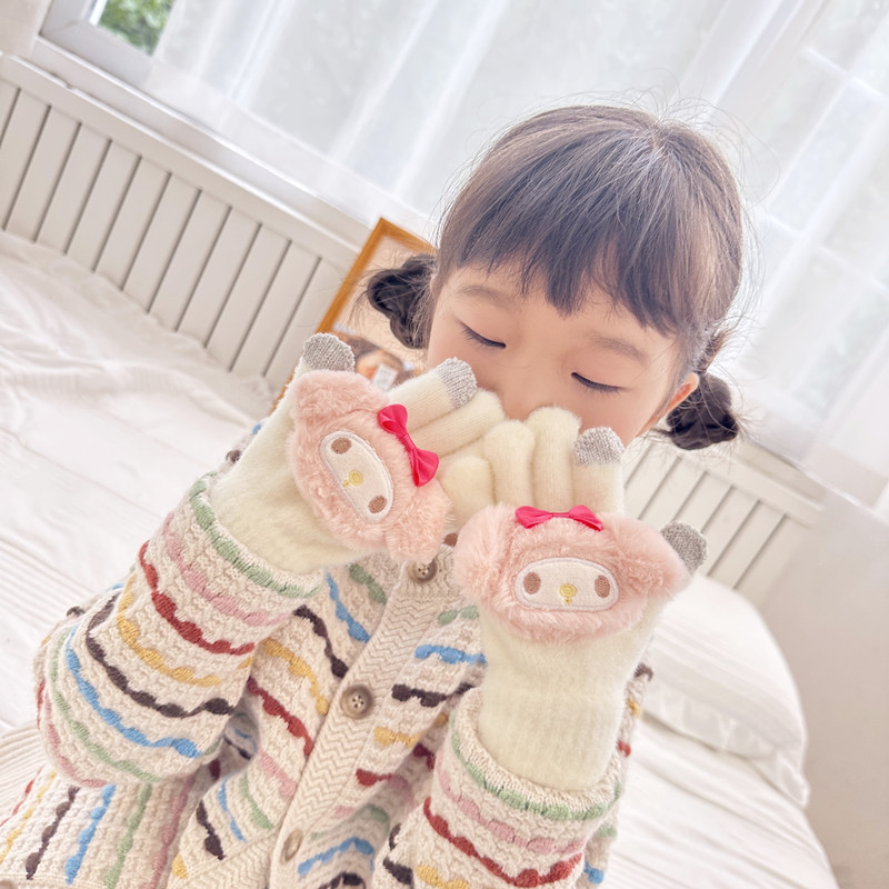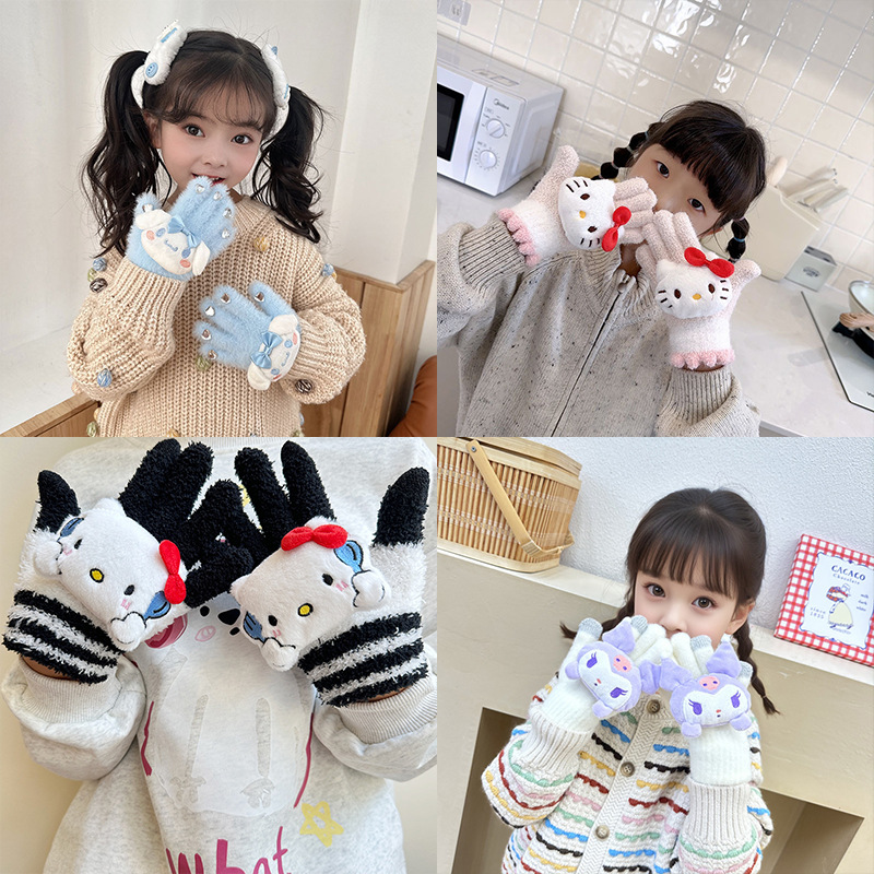 가을과 겨울 어린이 장갑 만화 귀여운 아기 장갑 소년 소녀를위한 두꺼운 감기 방지 따뜻한 산리오 장갑