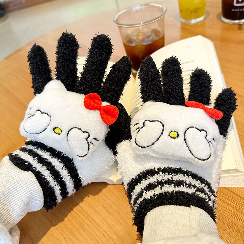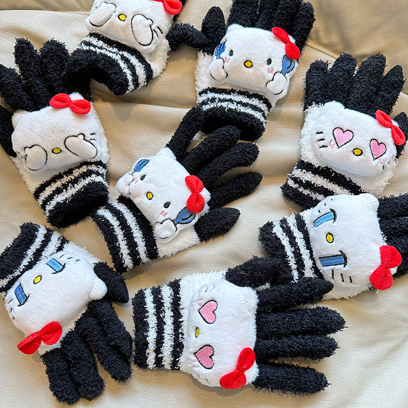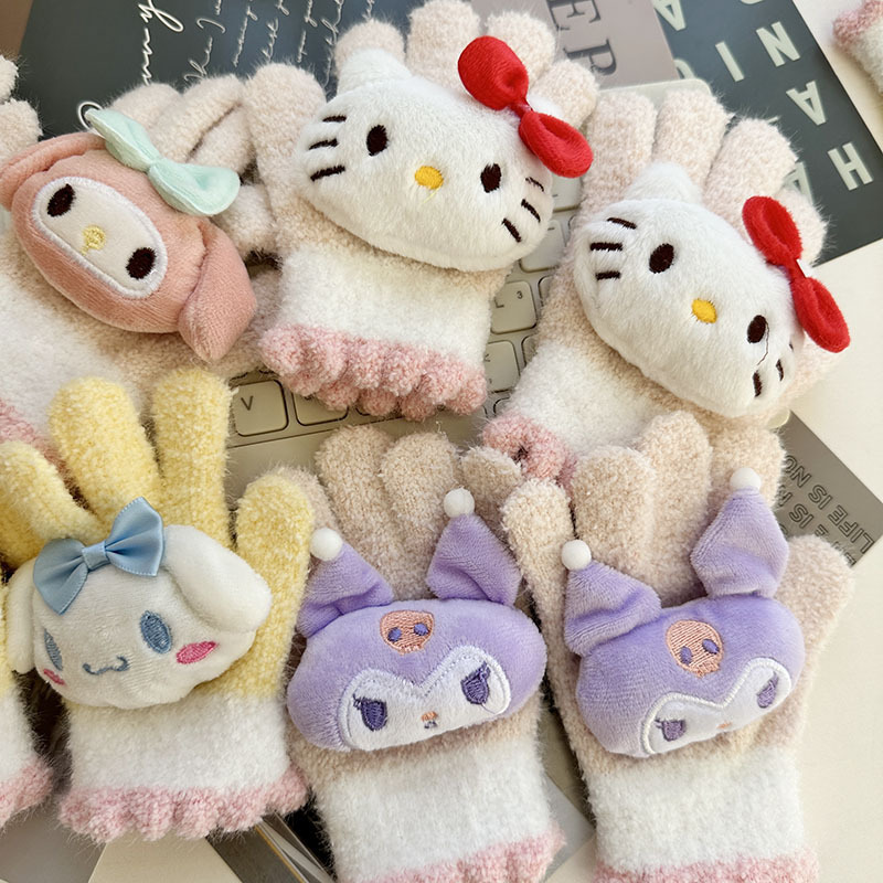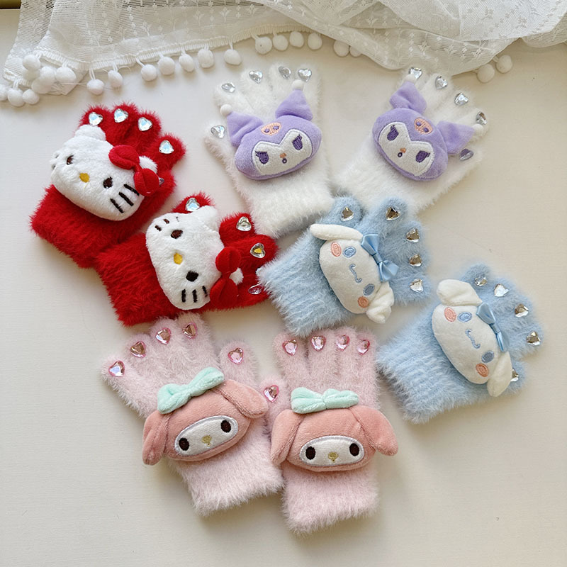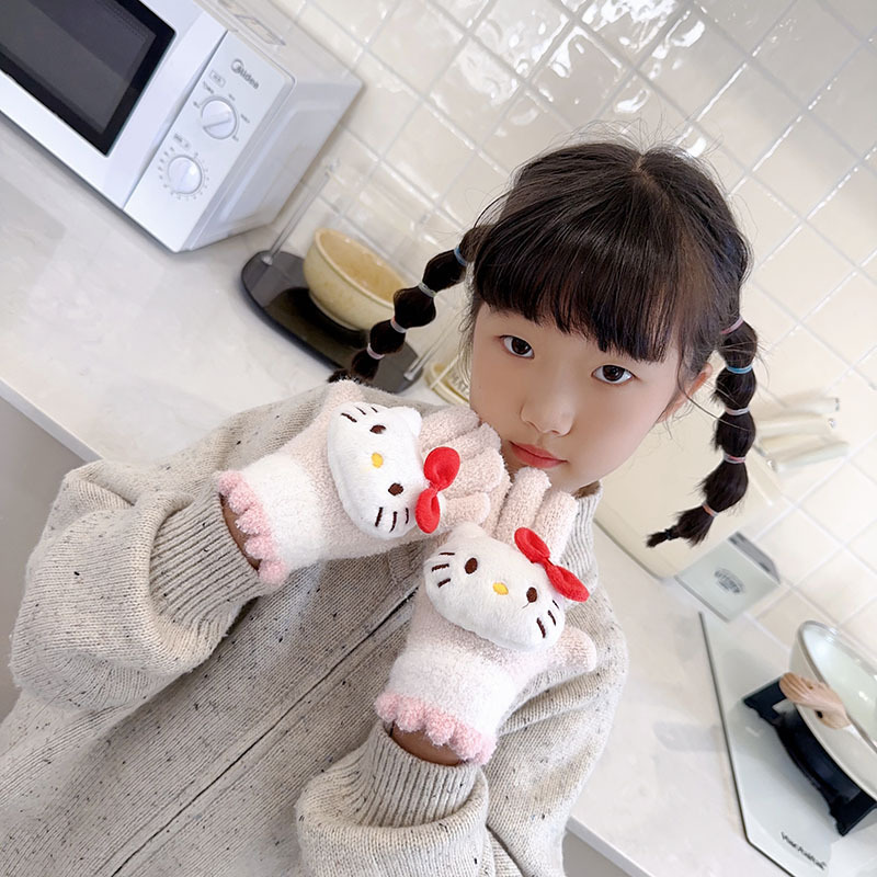 가을과 겨울 어린이 장갑 만화 귀여운 아기 장갑 소년 소녀를위한 두꺼운 감기 방지 따뜻한 산리오 장갑스토어 가기