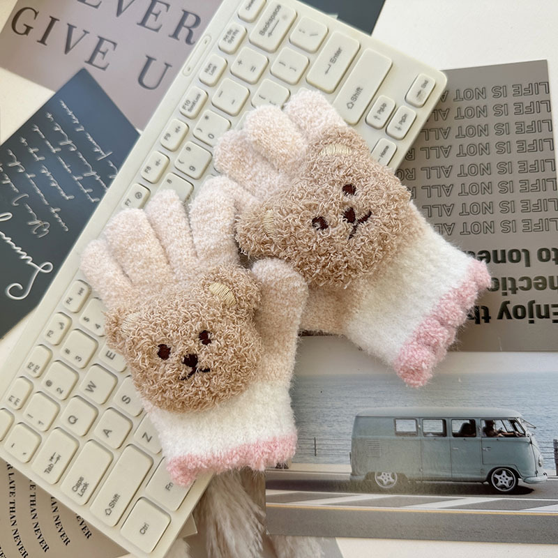 • 베이지색 곰 컬러 매칭 어린이 장갑