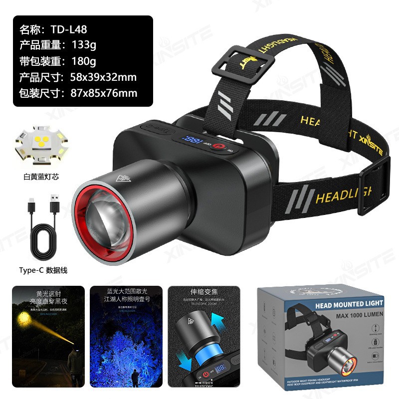국경 간 새로운 야외 LED 헤드 라이트 충전식 밝은 조명 스포트라이트 리튬 배터리 긴 수명 밝은 조명 야외 야간 낚시스토어 가기