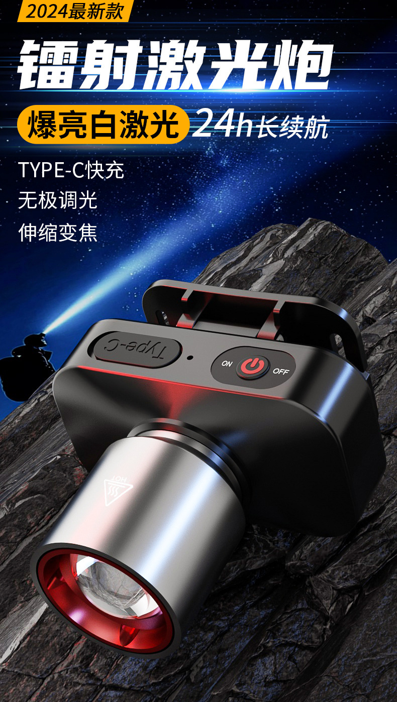 국경 간 새로운 야외 LED 헤드 라이트 충전식 밝은 조명 스포트라이트 리튬 배터리 긴 수명 밝은 조명 야외 야간 낚시