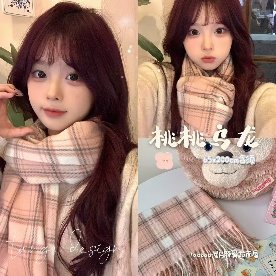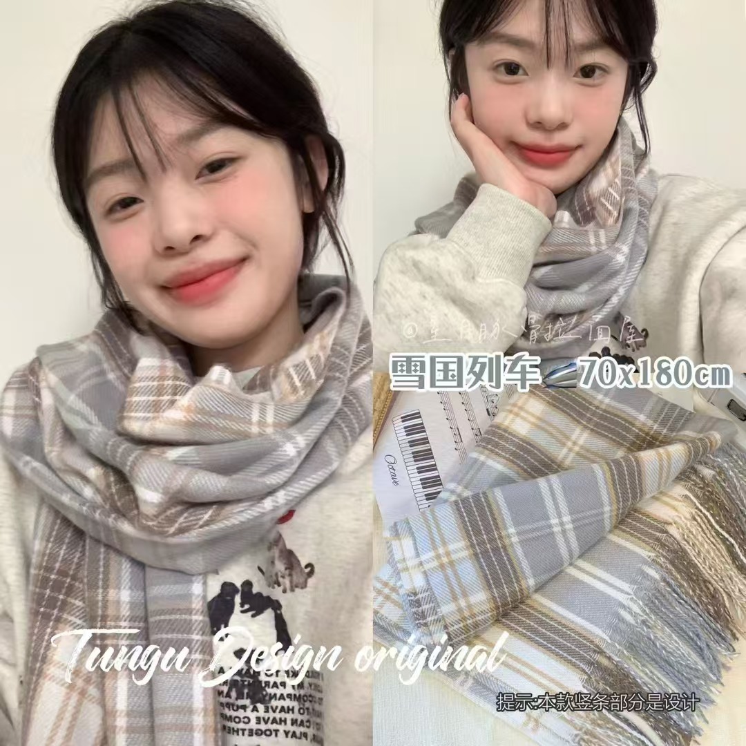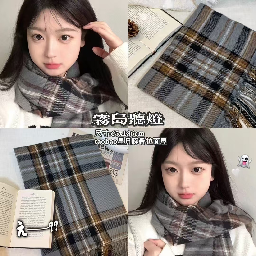 2024 겨울 새로운 패션 올 매치 스카프 작은 빨간 책 같은 스타일 따뜻한 올 매치 목도리 신선한 예술적 격자 무늬 Wai스토어 가기