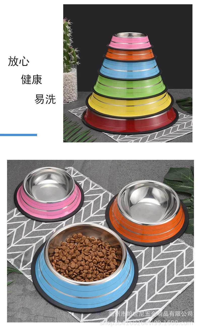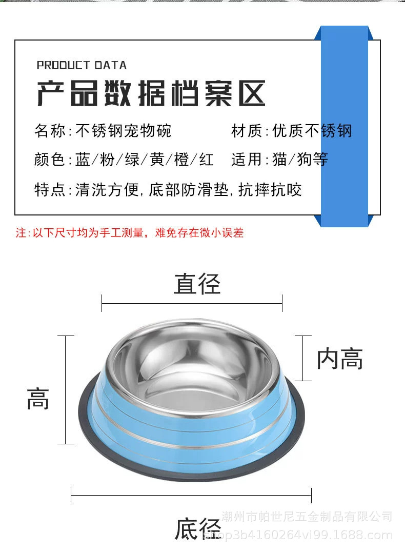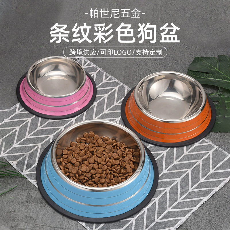 국경을 넘는 애완동물 용품 스테인리스 고양이 밥그릇 넘어짐 방지 대형 강아지 물그릇 밥그릇 애완동물 그릇 도매