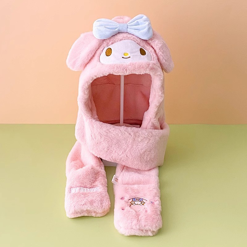 어린이 모자와 스카프 일체형 겨울 따뜻한 소년과 소녀 플러시 멜로디 귀 보호 모자와 장갑 2024 새로운 스타일