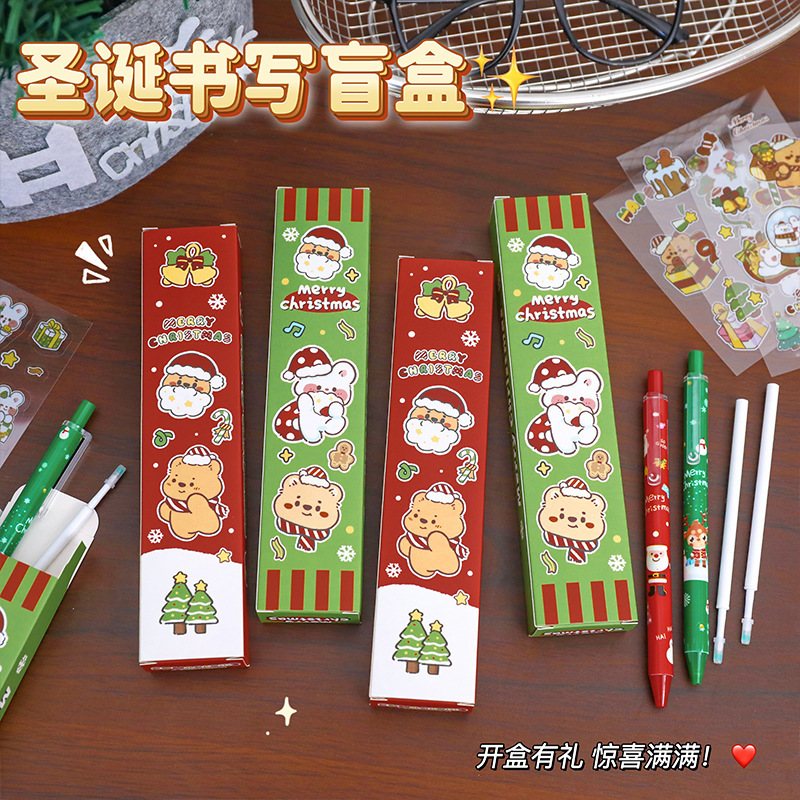 귀여운 크리스마스 블라인드 박스 펜 세트 학생 쓰기 브러시 질문 펜 만화 프레스 젤 펜 크리스마스 선물스토어 가기