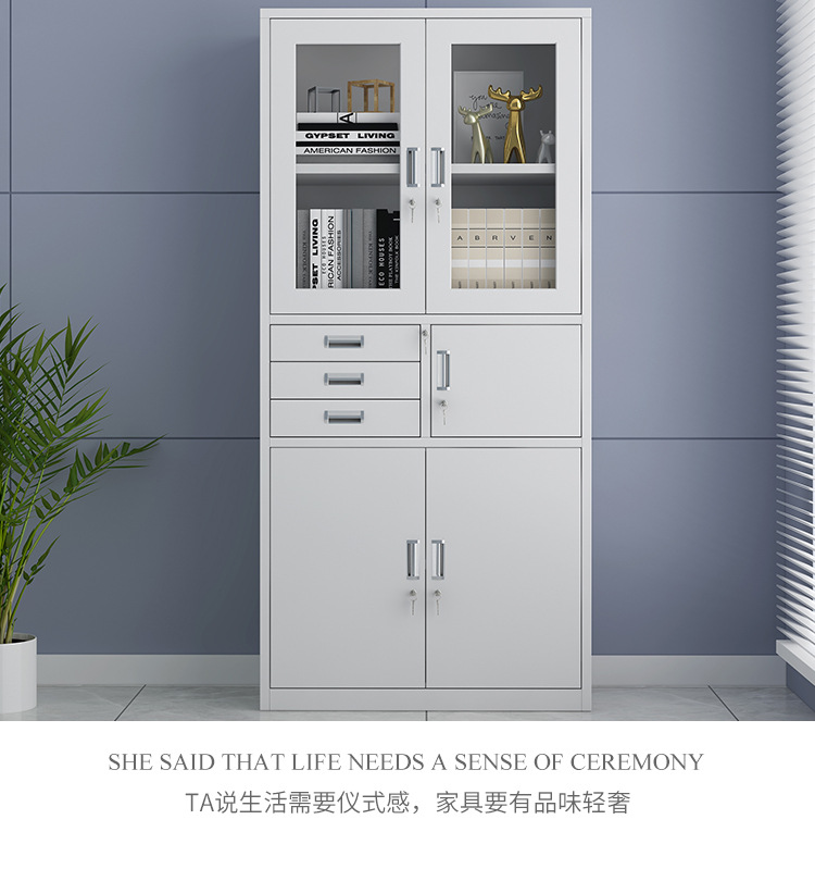 厂家直销办公室对开门抽屉式资料档案文件柜 员工带锁铁皮储物柜