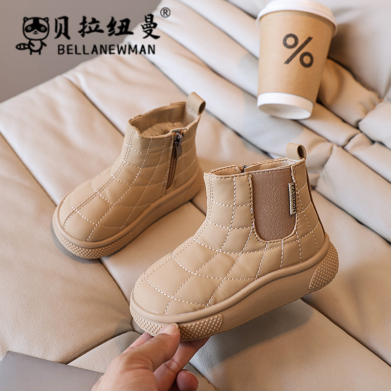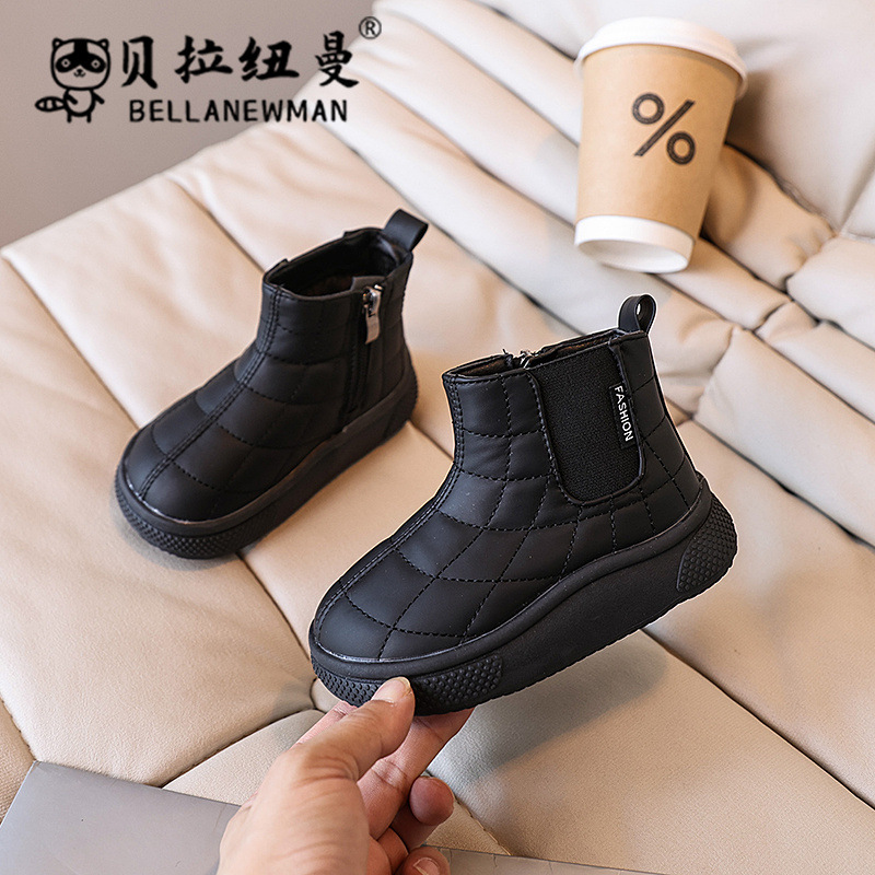 소녀 스노우 부츠 2024 겨울 새로운 어린이 기모 두꺼운 코튼 슈즈 학생 블랙 대형면 짧은 부츠스토어 가기