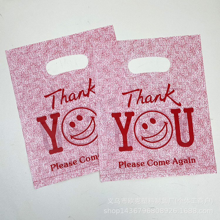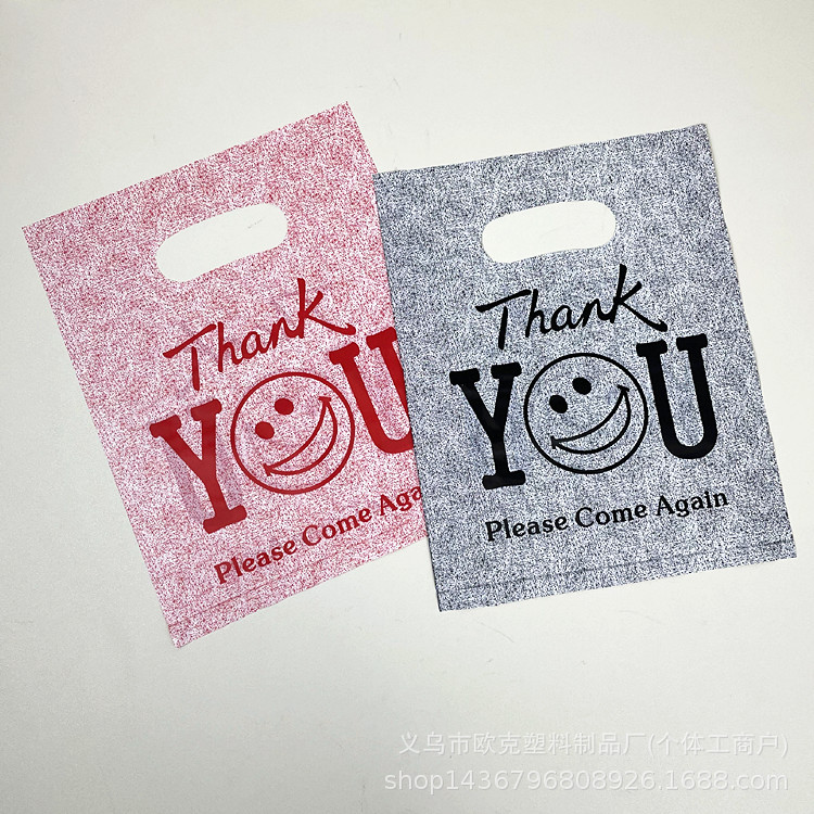 국경 간 도매 재고 Thankyou 플라스틱 핸드백 의류 매장 쇼핑 가방 선물 포장 가방 보석 가방