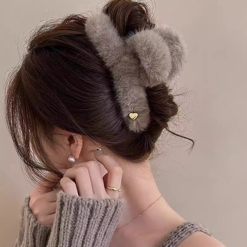 러브 플러시 머리핀 대형 헤어클립 여성용 2025 신상 뒷머리 고급스러운 느낌의 상어 클립 겨울 헤어 액세서리스토어 가기