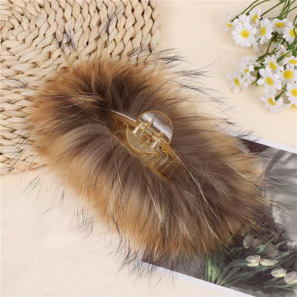 • 라지 너구리 플러시 헤어 클립 - 레오파드 프린트 컬러