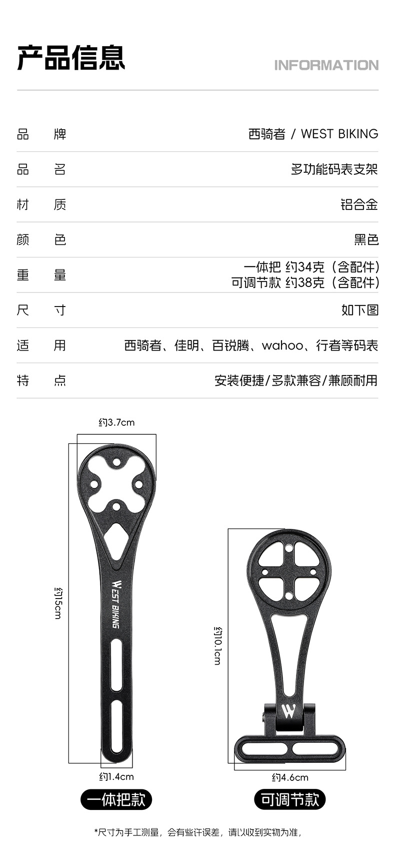 웨스트 라이더 호이스팅 미터 브래킷 통합 도로 자동차 확장 프레임 자전거 라이트 스포츠 카메라 확장 프레임