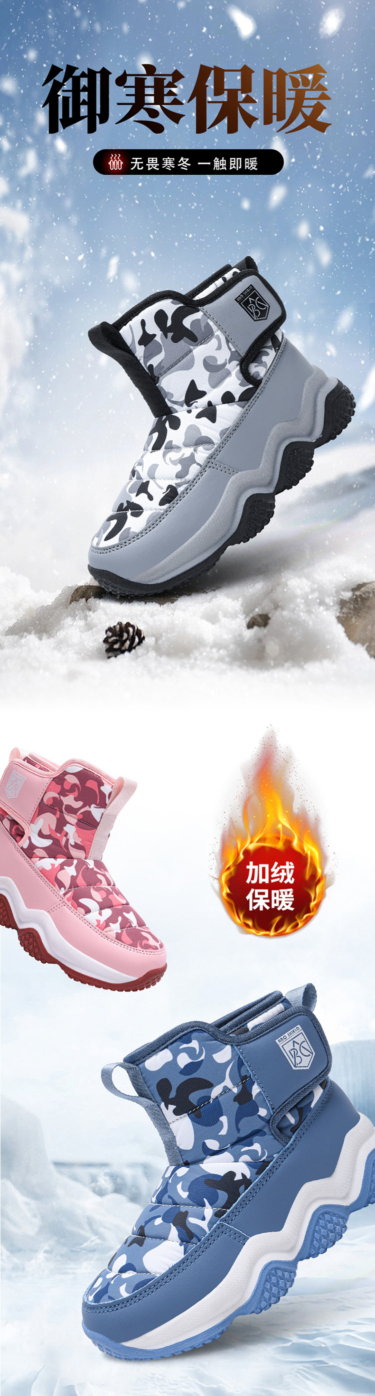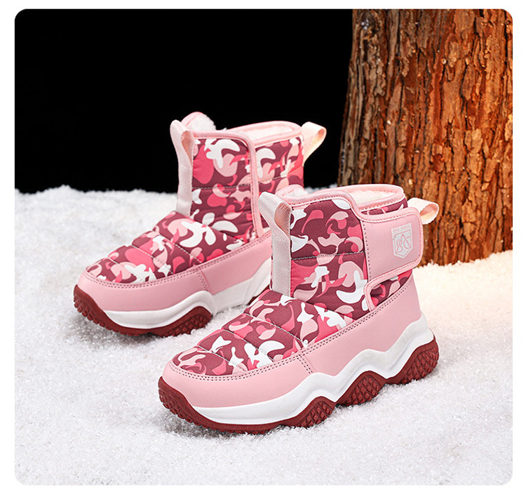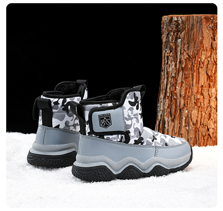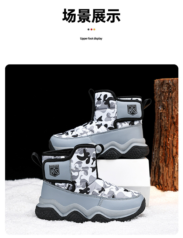 어린이 스노우 부츠 2023 겨울 새 기모 따뜻한 큰 어린이 코튼 신발 멀티 컬러 높은 위장 부츠 국경