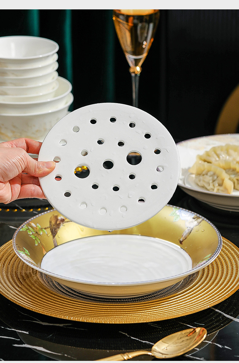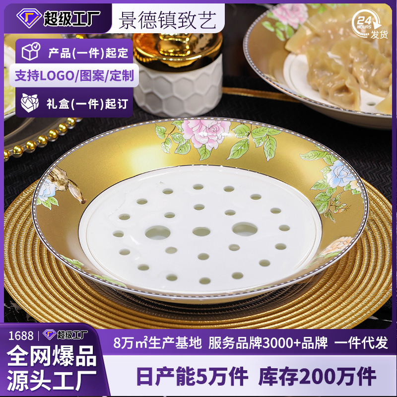 경덕진 도자기 만두 접시 맞춤 제작 배수 기능 대형 도자기 만두 전용 접시 고급스러운 수프 접시 및 요리 접시