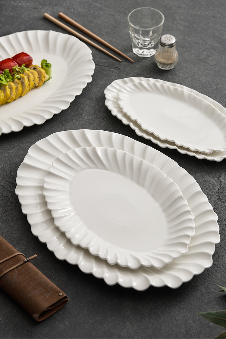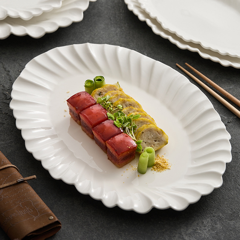 접이식 잎무늬 접시 도매, 서양식 세라믹 스테이크 접시, 고급 가정용 아침 식사 플랫 접시, 고급스러운 디저트 접시스토어 가기