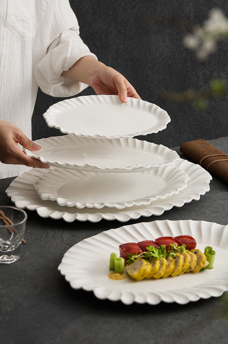 접이식 잎무늬 접시 도매, 서양식 세라믹 스테이크 접시, 고급 가정용 아침 식사 플랫 접시, 고급스러운 디저트 접시
