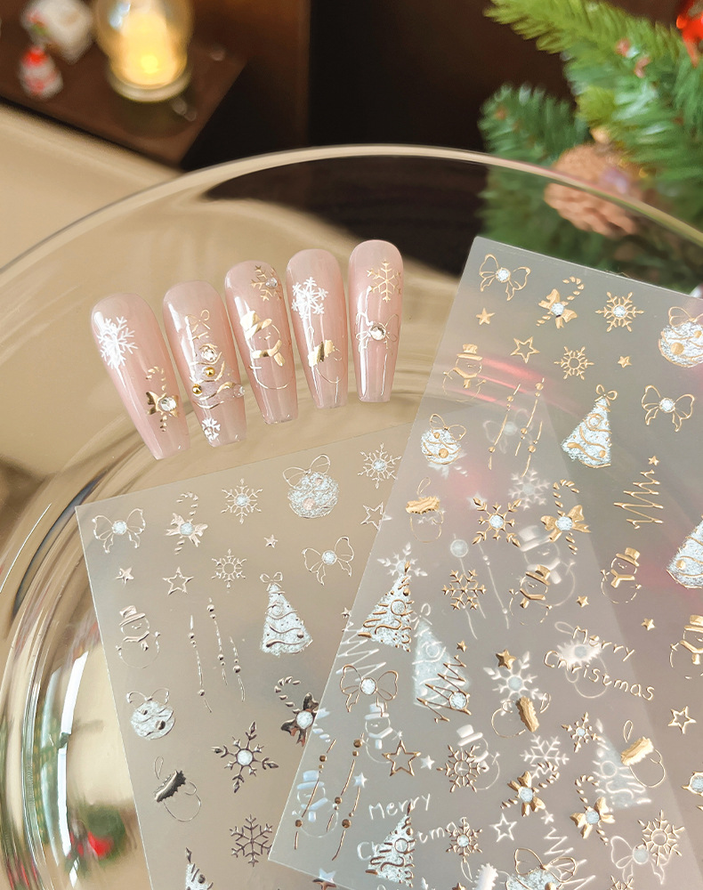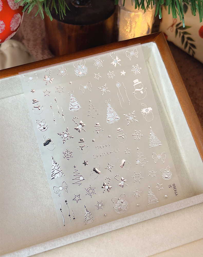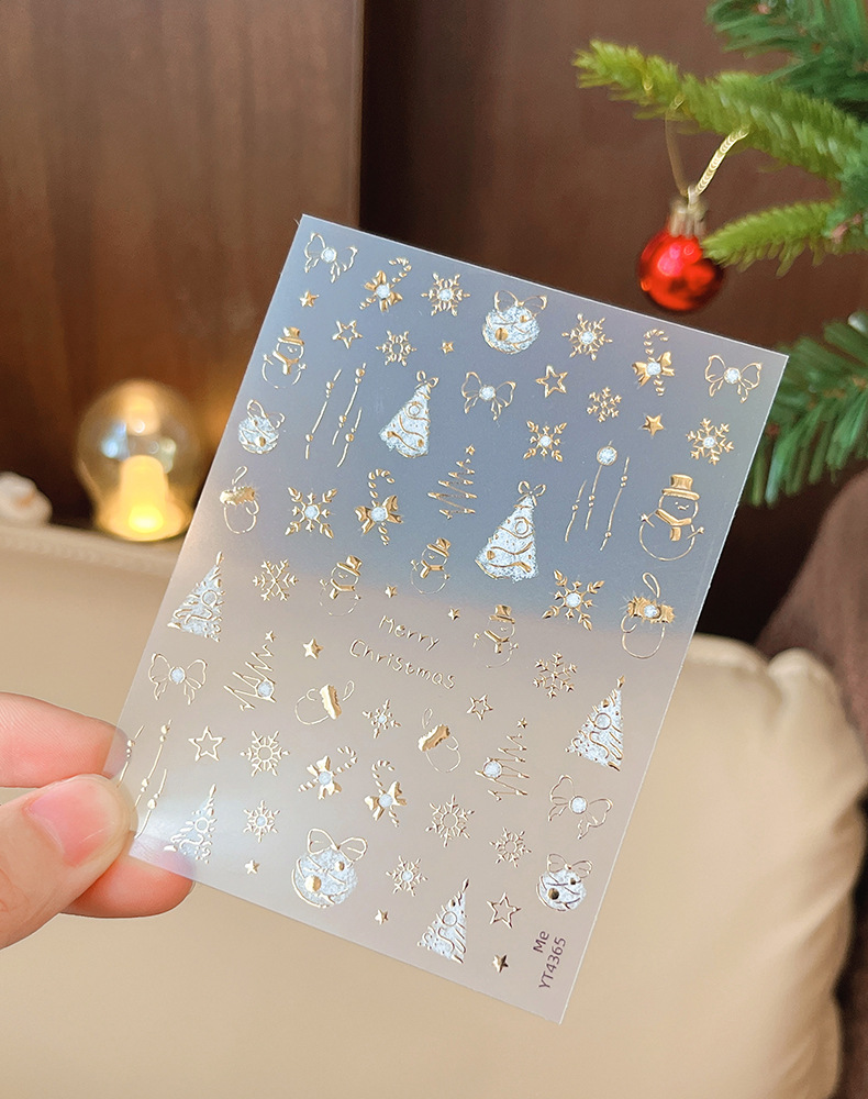 YITU 개미 그림 핫 스탬핑 골드 및 실버 크리스마스 네일 아트 스티커 활 눈사람 절묘한 접착제 네일 장식 스티커 YT4366스토어 가기