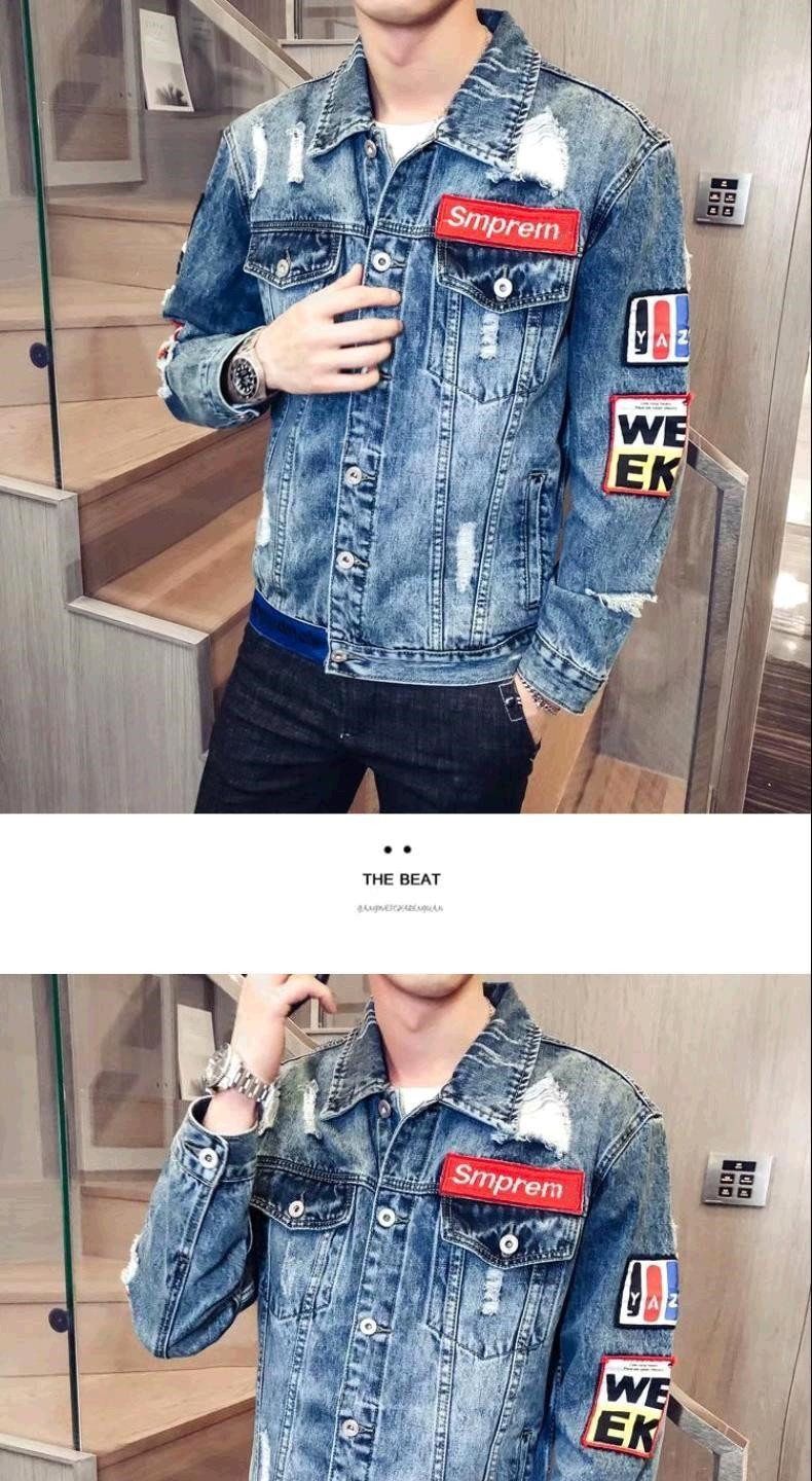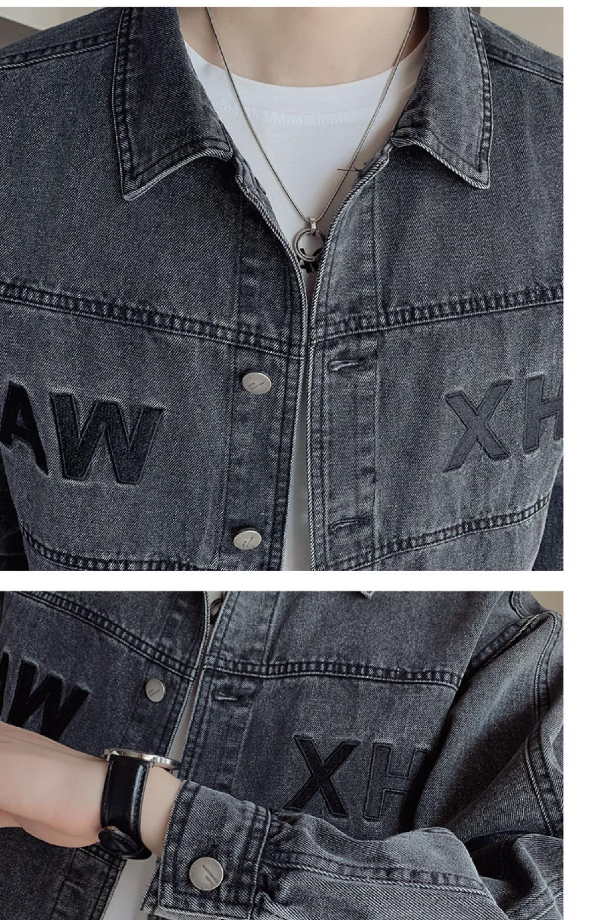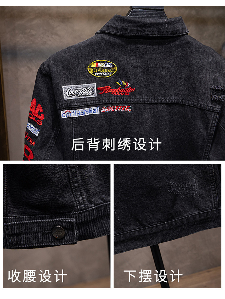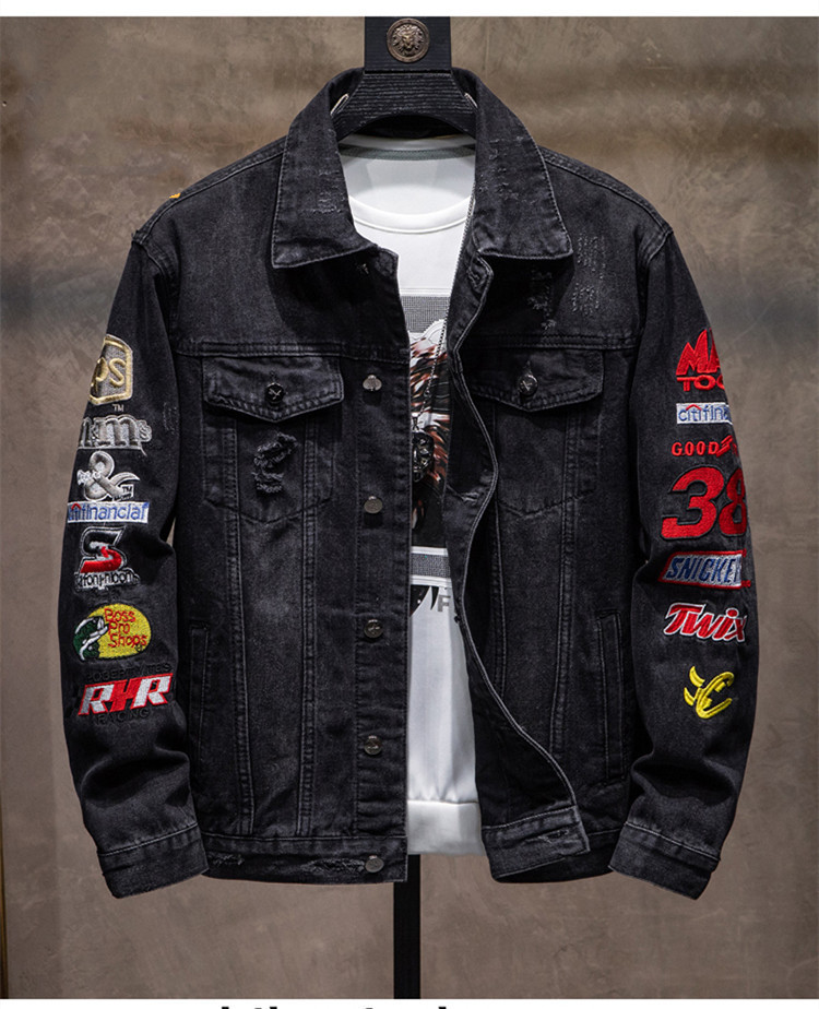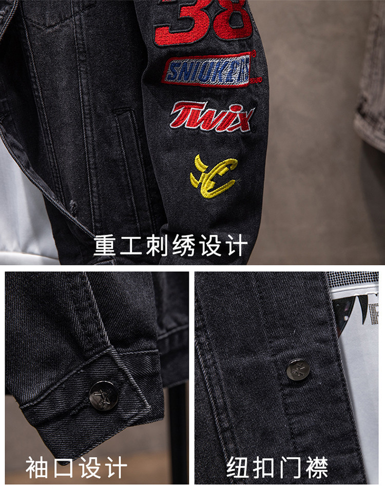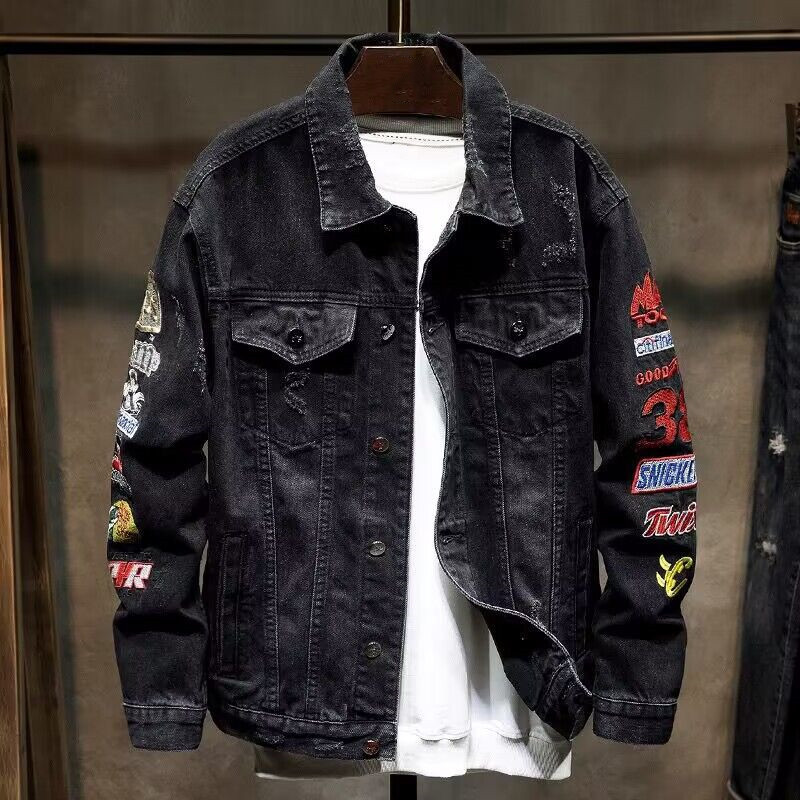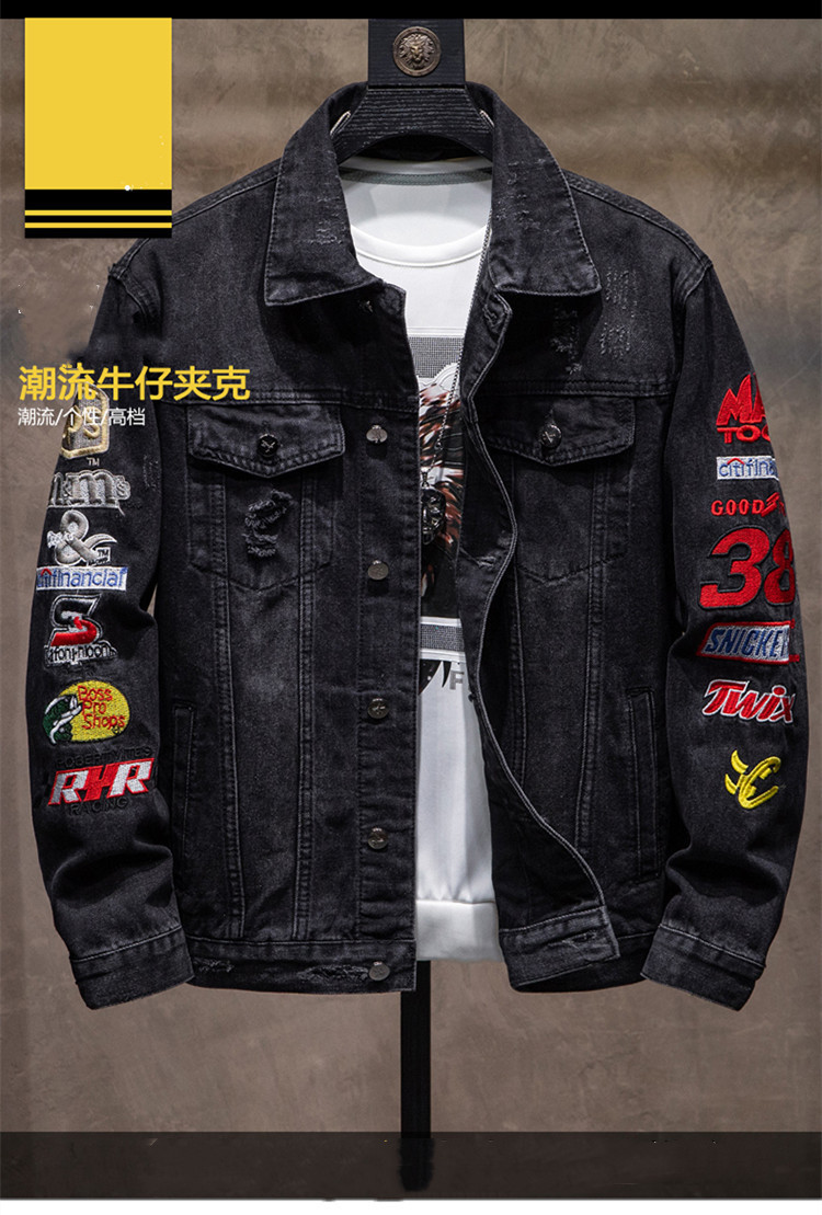 유행 브랜드 리핑 자수 데님 재킷 남성 봄과 가을 느슨한 최고 유행 청소년 재킷 캐주얼 긴 소매 재킷스토어 가기