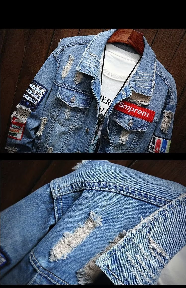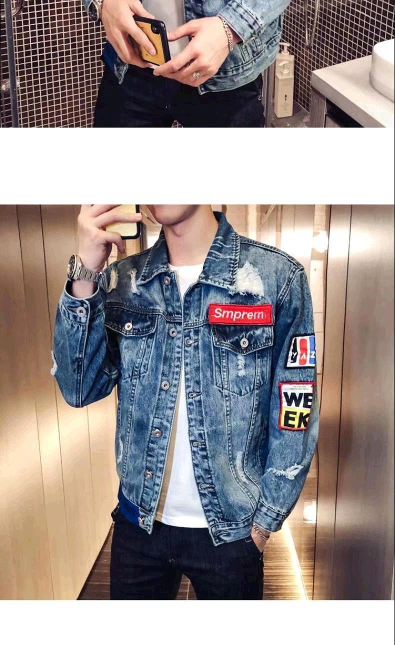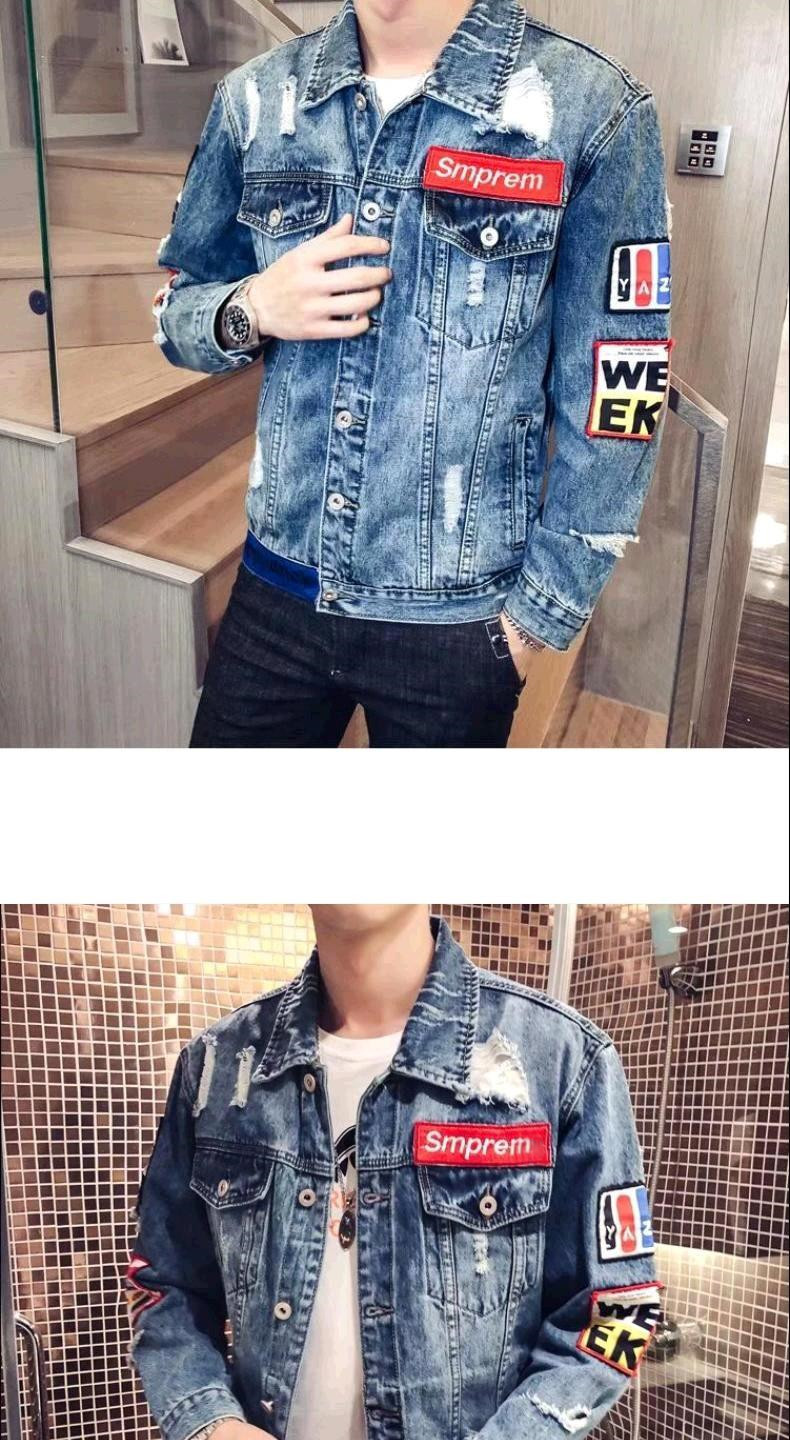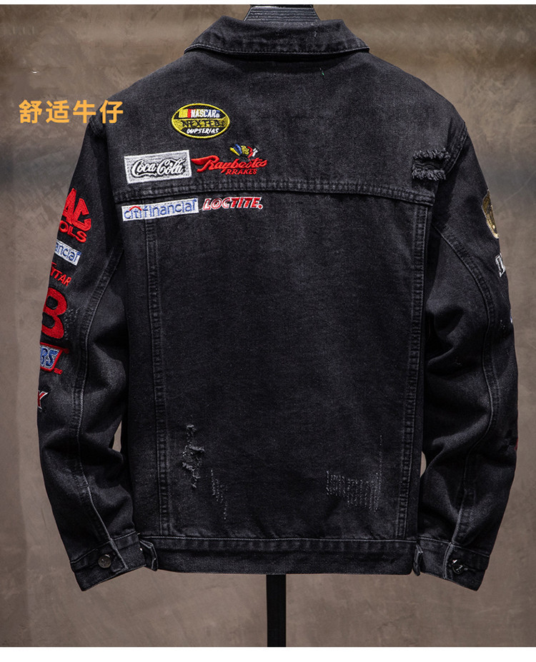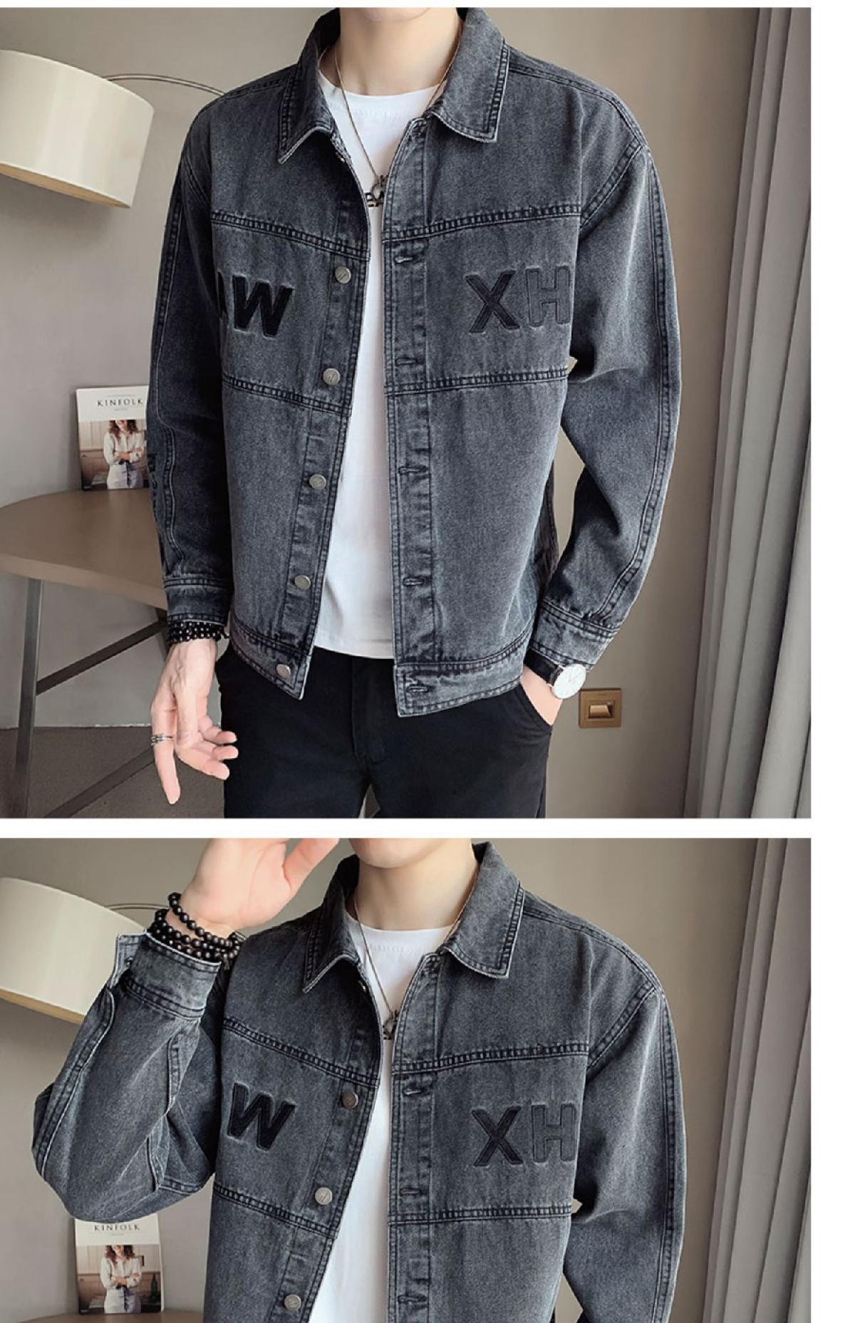 유행 브랜드 리핑 자수 데님 재킷 남성 봄과 가을 느슨한 최고 유행 청소년 재킷 캐주얼 긴 소매 재킷스토어 가기