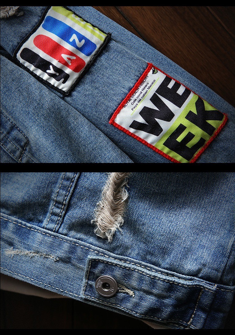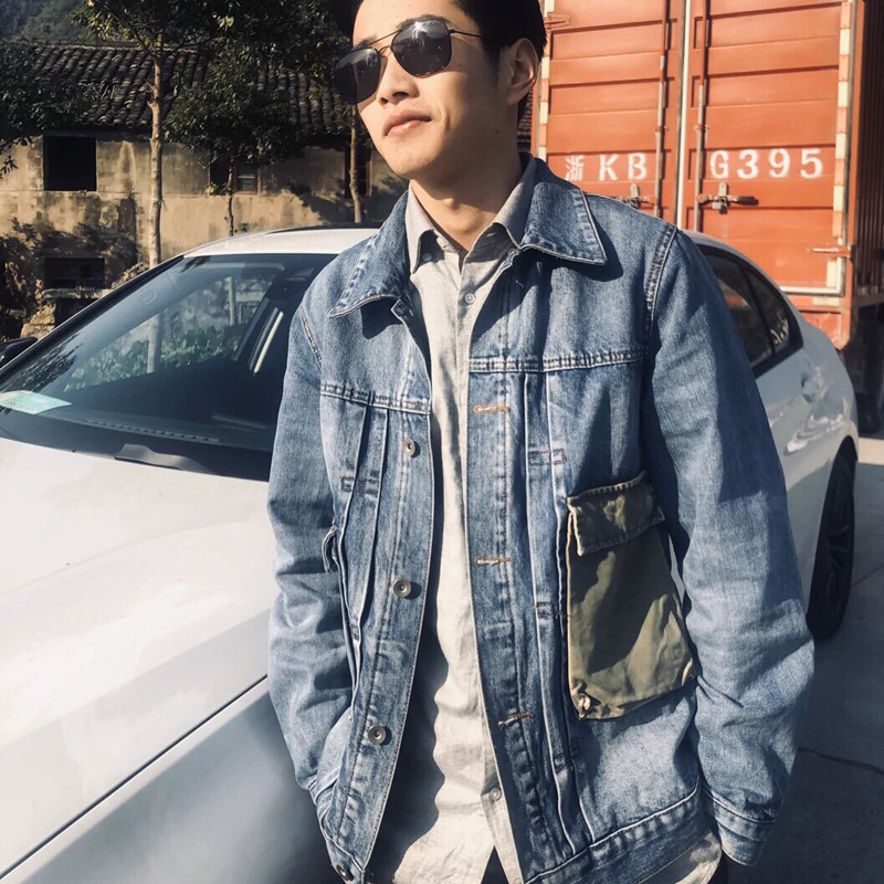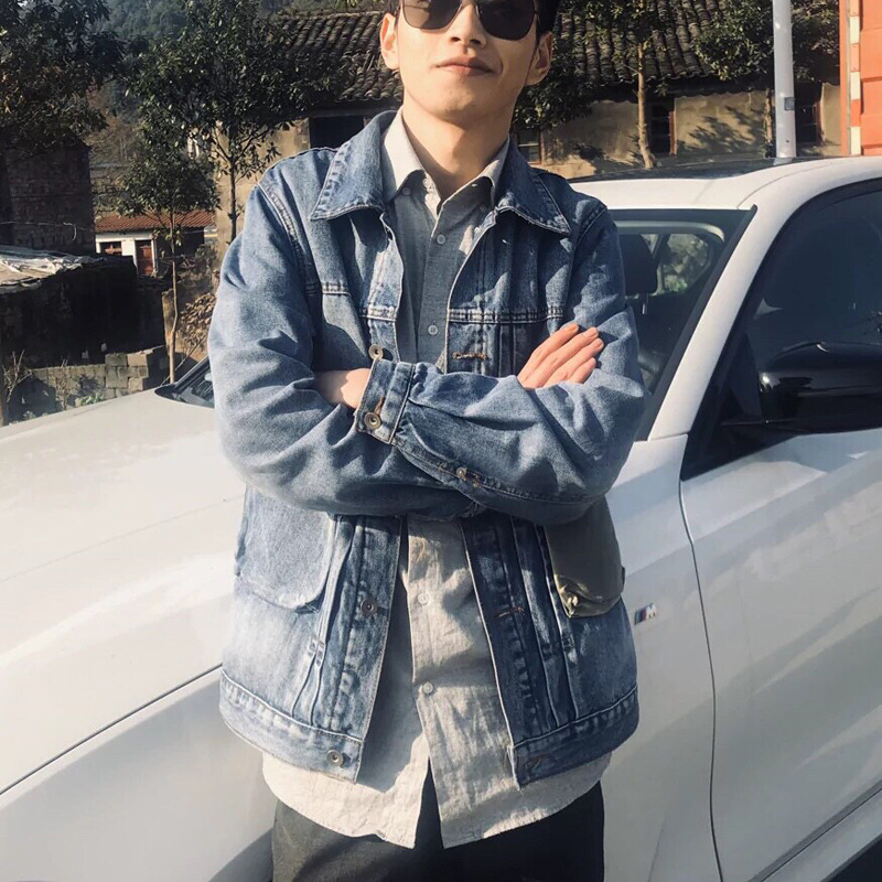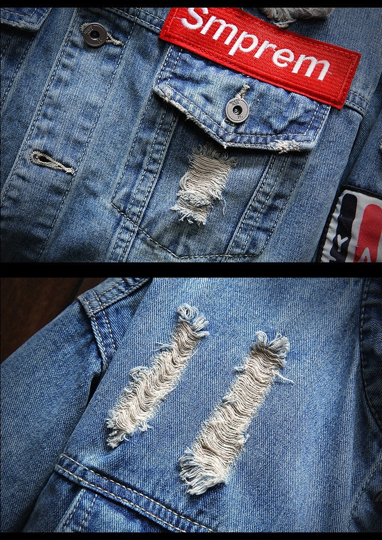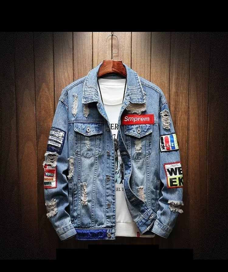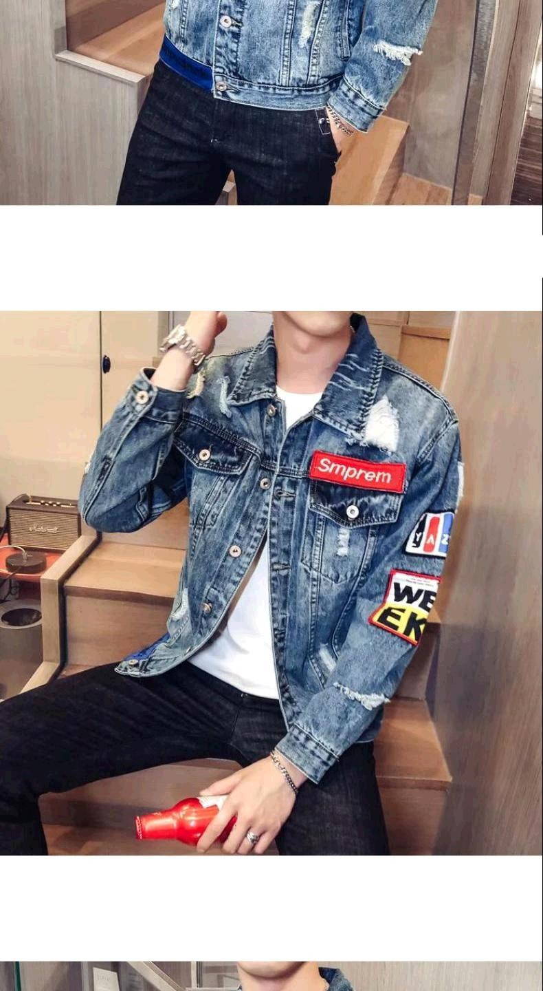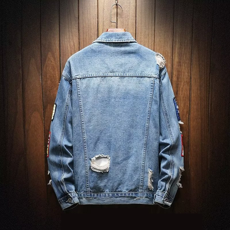 유행 브랜드 리핑 자수 데님 재킷 남성 봄과 가을 느슨한 최고 유행 청소년 재킷 캐주얼 긴 소매 재킷스토어 가기