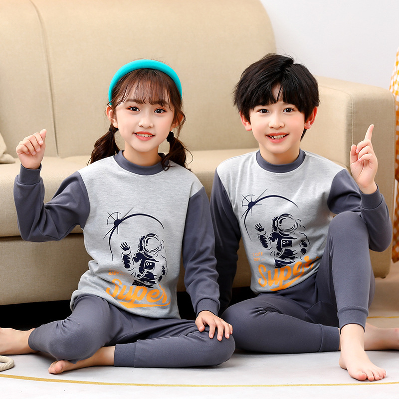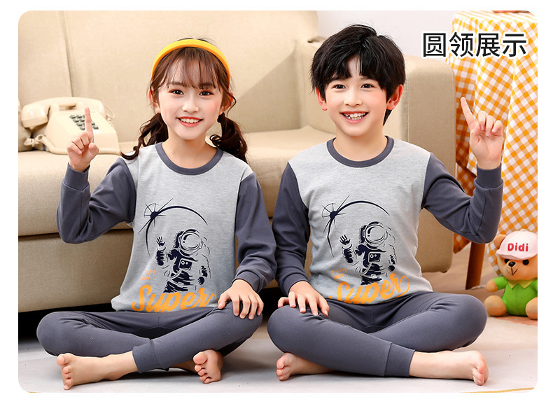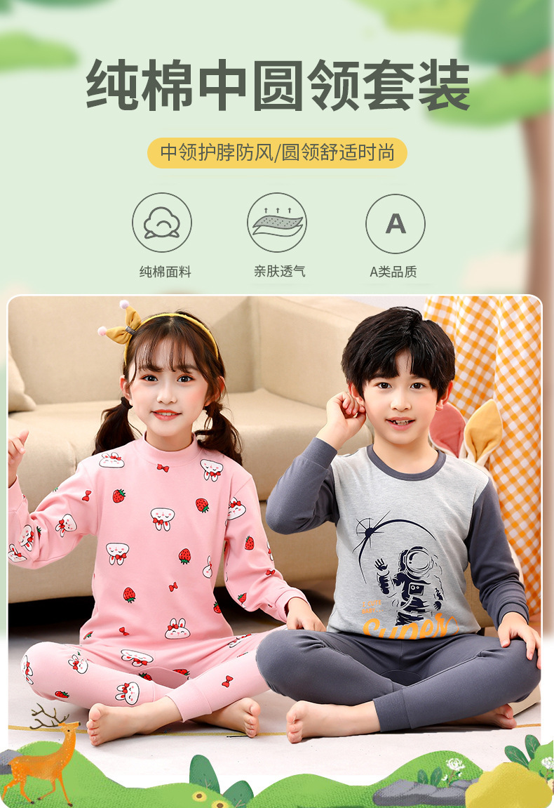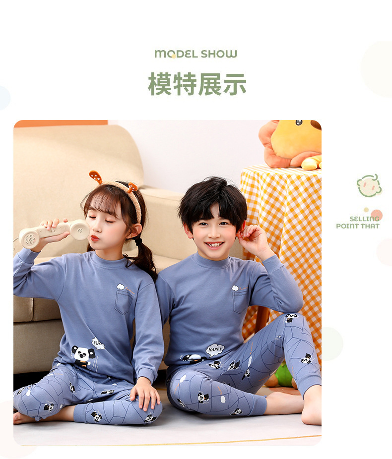 순수한면 어린이 가을 옷과 바지 속옷 세트 소년 및 소녀 가정 옷 중 · 대형 어린이를위한 잠옷 카테고리 가을과 겨울 기지스토어 가기