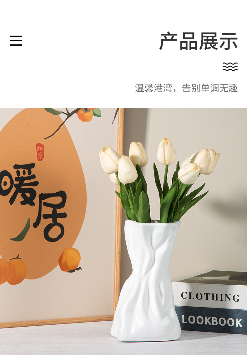크림 스타일 모방 세라믹 플라스틱 꽃병 장식품 거실 꽃꽂이 튤립 모란 수경 인공 꽃 꽃꽂이스토어 가기
