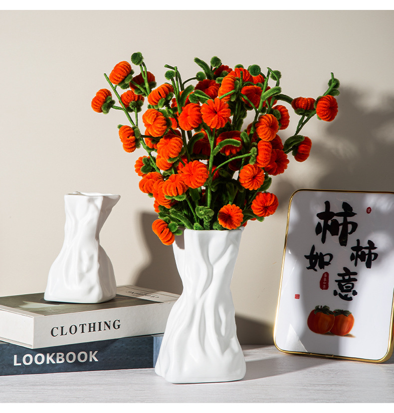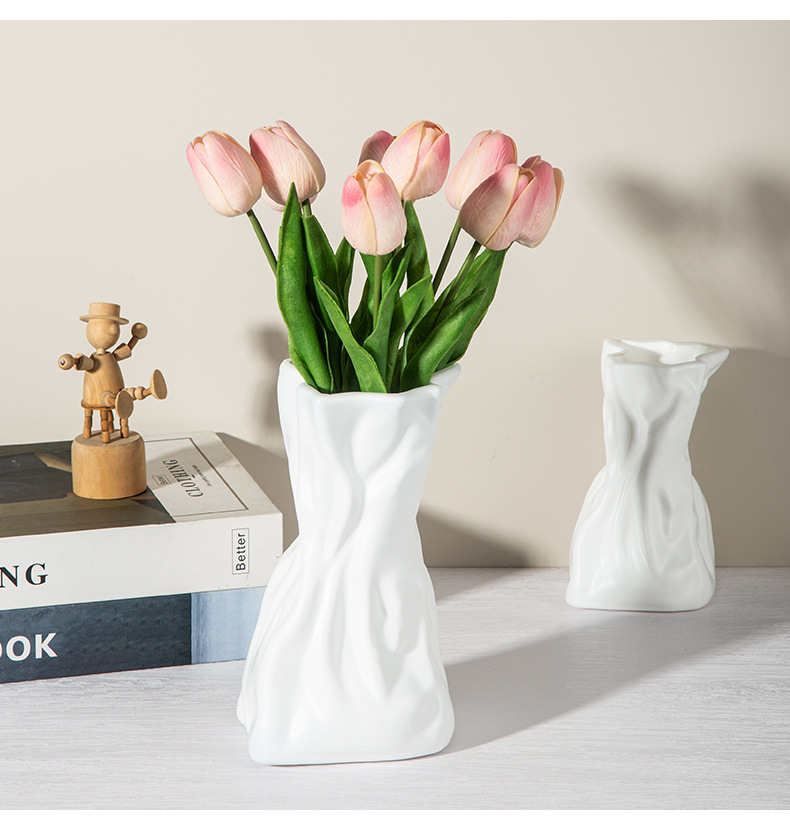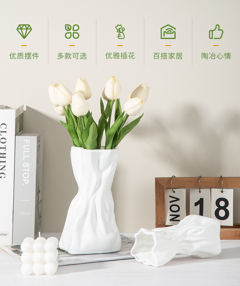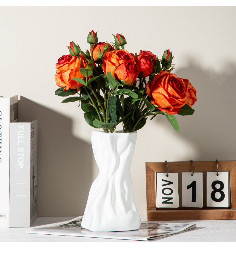 크림 스타일 모방 세라믹 플라스틱 꽃병 장식품 거실 꽃꽂이 튤립 모란 수경 인공 꽃 꽃꽂이