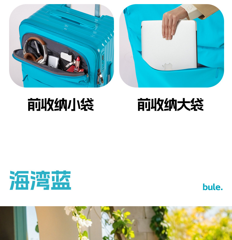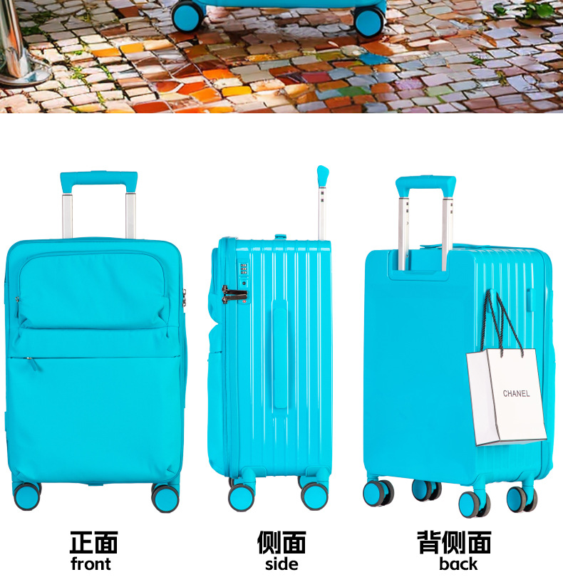 공장 새로운 수하물 유니버설 휠 가방 남성과 여성의 전면 오픈 커버 20 인치 대용량 암호 탑승 상자스토어 가기