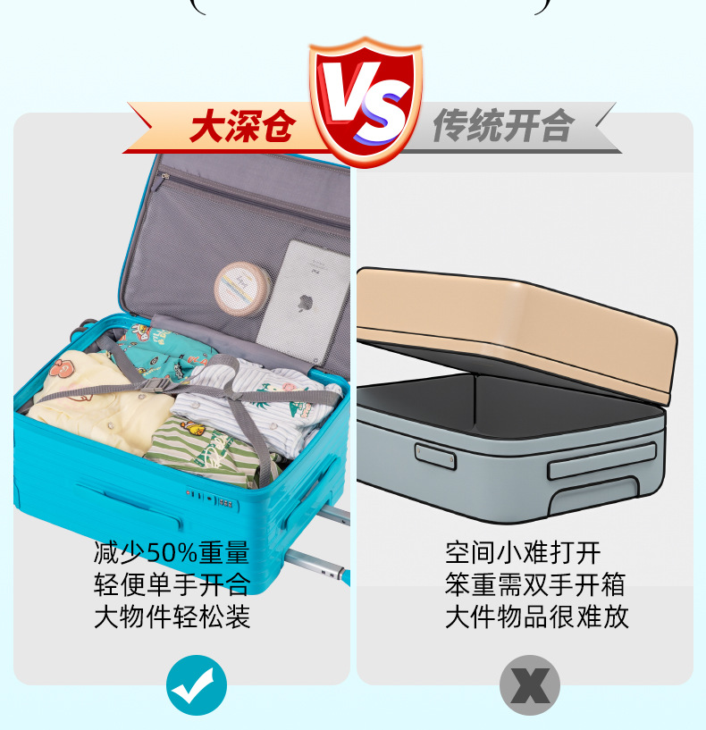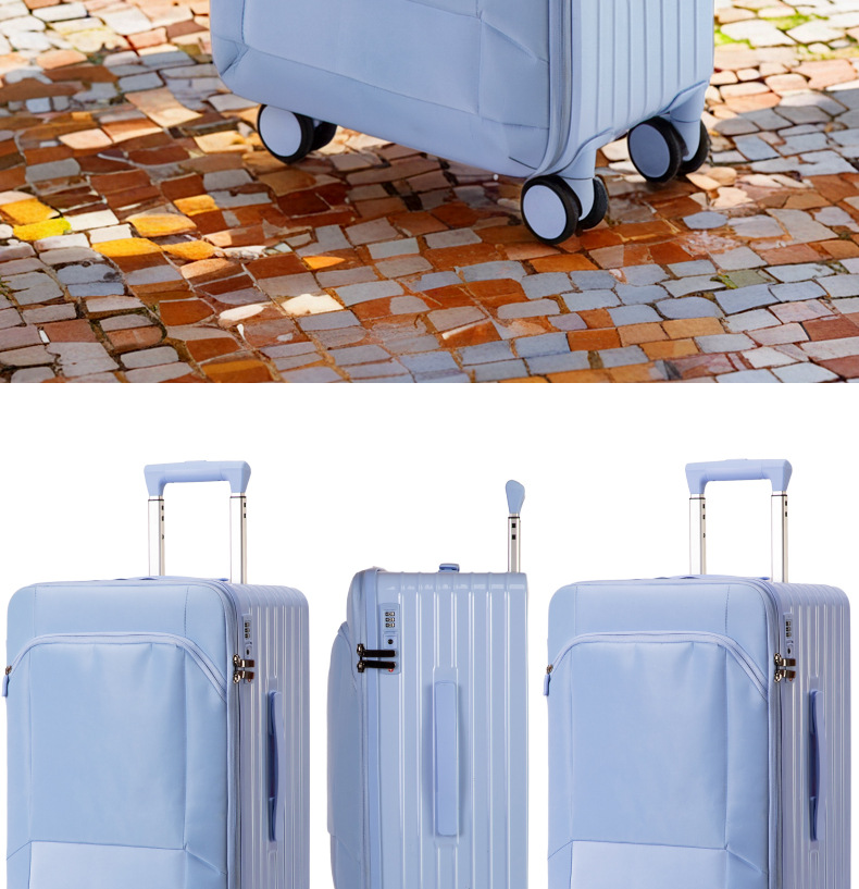 공장 새로운 수하물 유니버설 휠 가방 남성과 여성의 전면 오픈 커버 20 인치 대용량 암호 탑승 상자