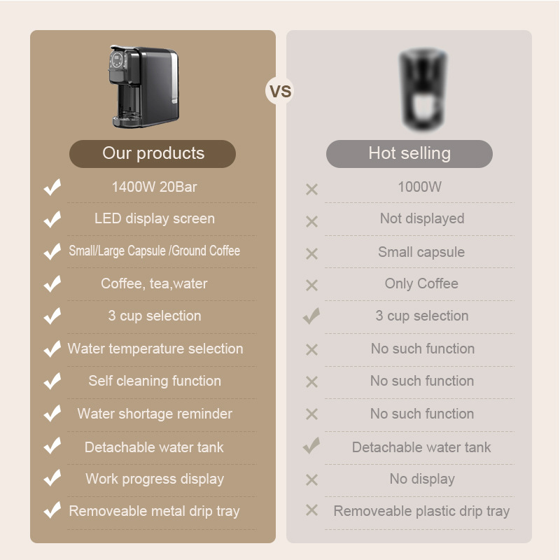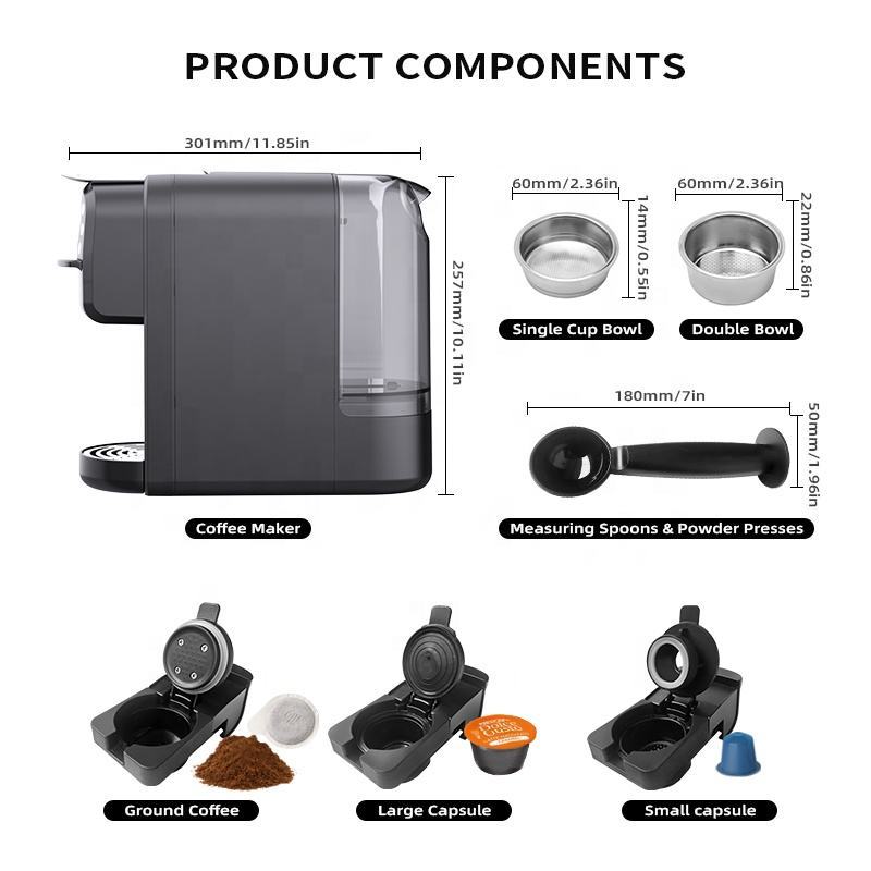 • Compatible With Nespresso / Dolce Gusto / Coffee Powder /Coffee Pod