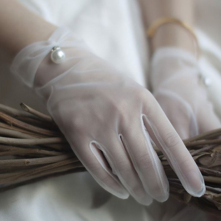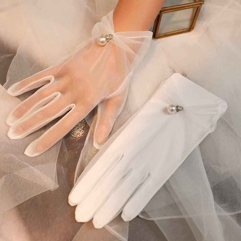 여름 신부 짧은 웨딩 원피스 장갑 사진 웨딩 화이트 원사 교수형 구슬 여성 화이트 웨딩 레이스 장갑스토어 가기