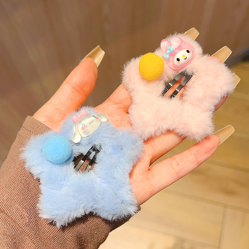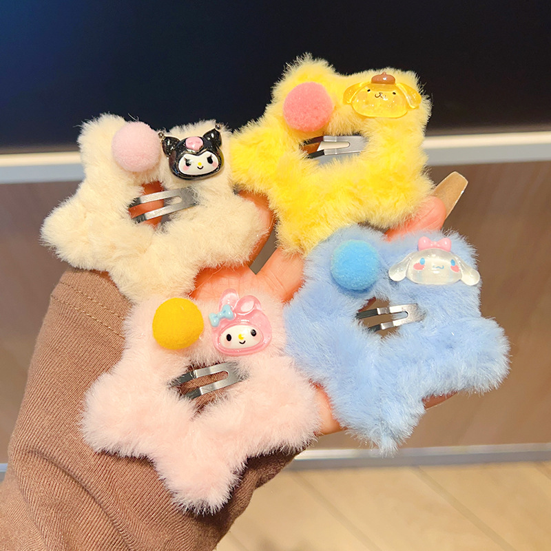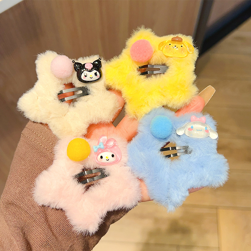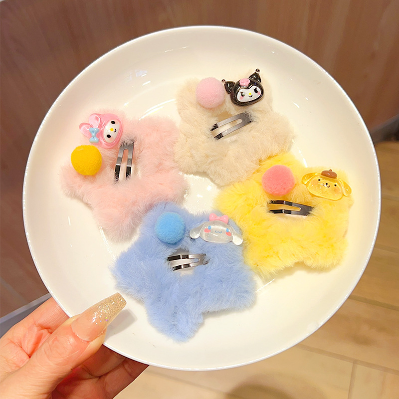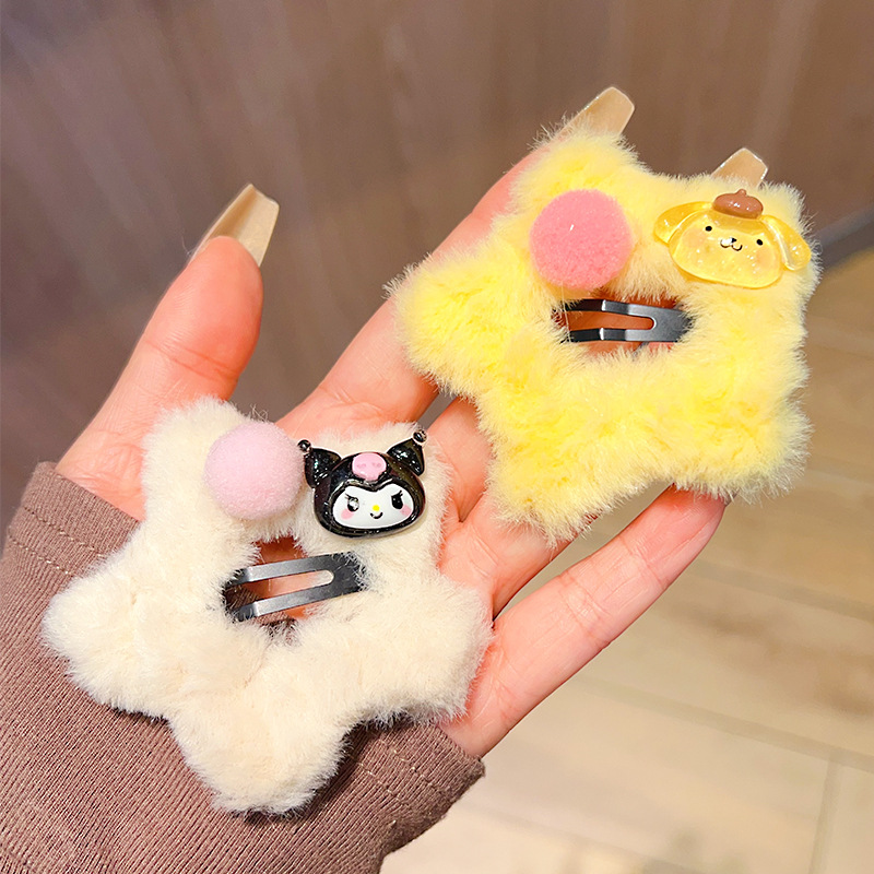푹신한 귀여운 쿨로 미 BB 클립 소녀 가을과 겨울 봉제 다섯개의 별 사이드 클립 달콤한 헤어 액세서리 헤어핀 클립