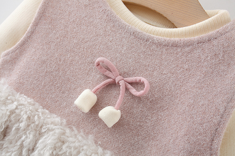 아동복 소녀 치마 세트 가을과 겨울 기모 어린이 아기 소녀 긴팔 티셔츠 마오 마오 조끼 스커트 투피스 세트