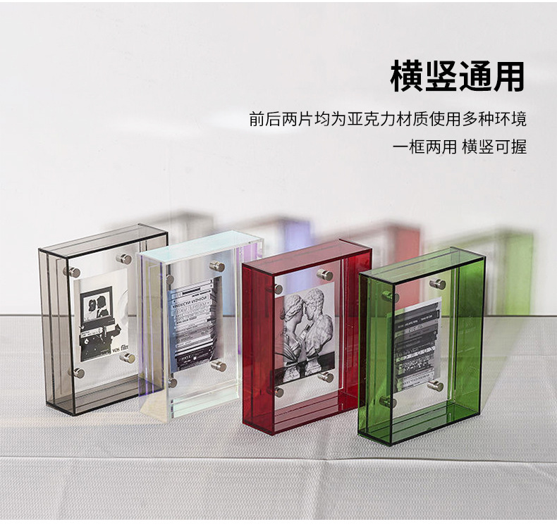 아크릴 사진 프레임 투명 컬러 자기 플라스틱 사각형 직사각형 빈 프레임 양면 크리스탈 유리 diy 4inch